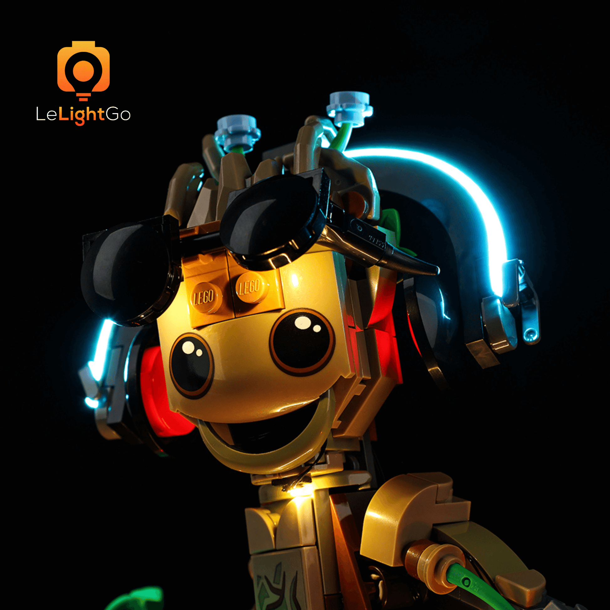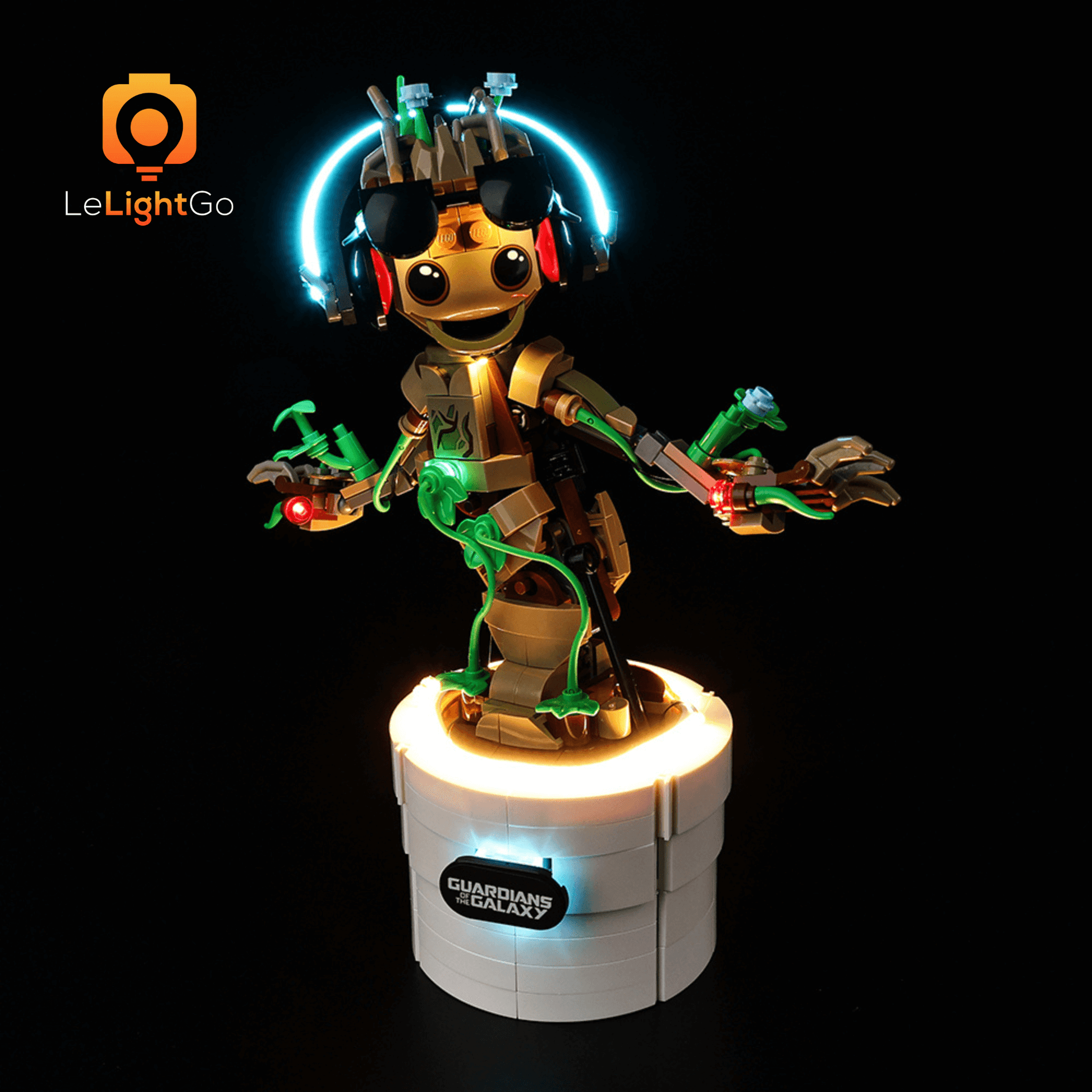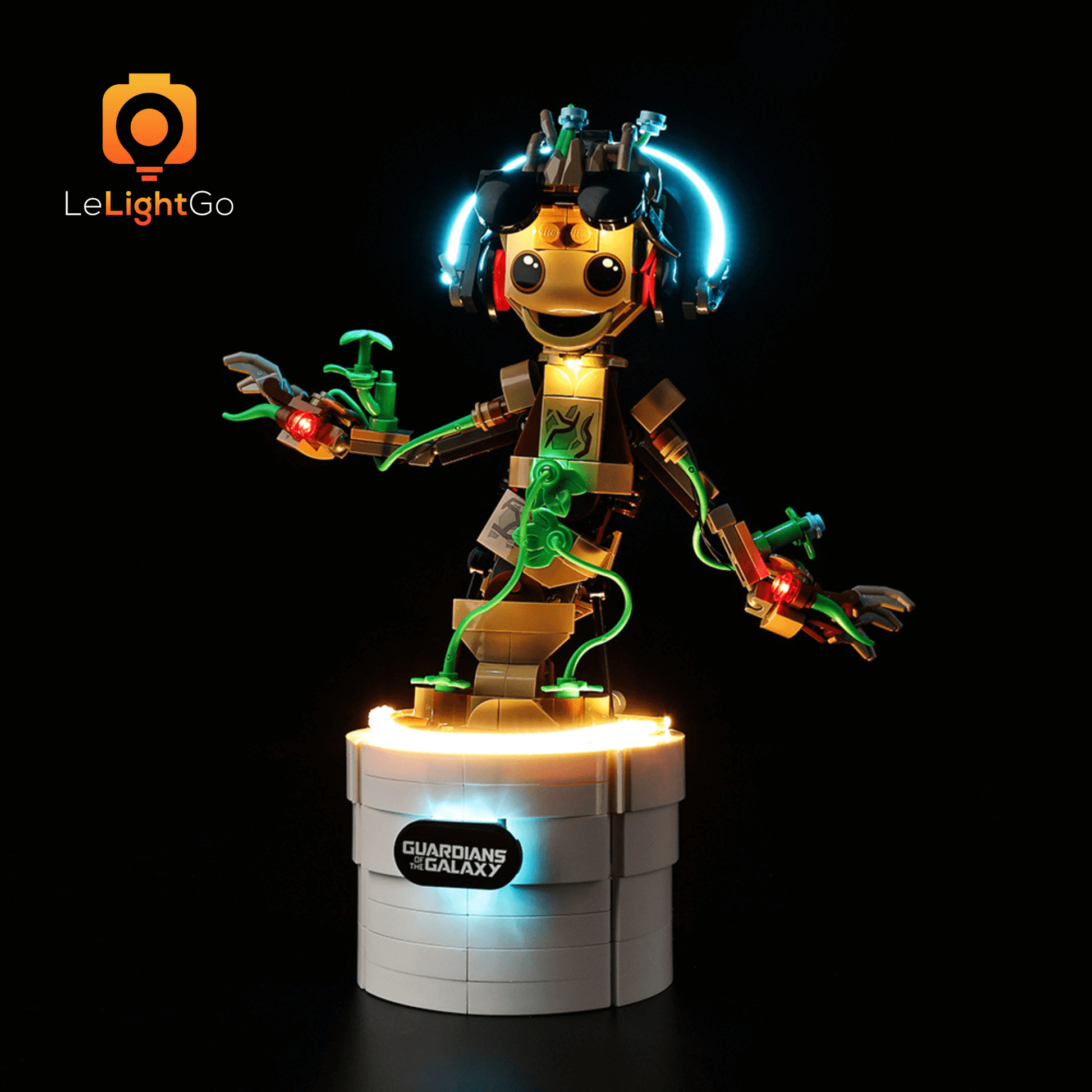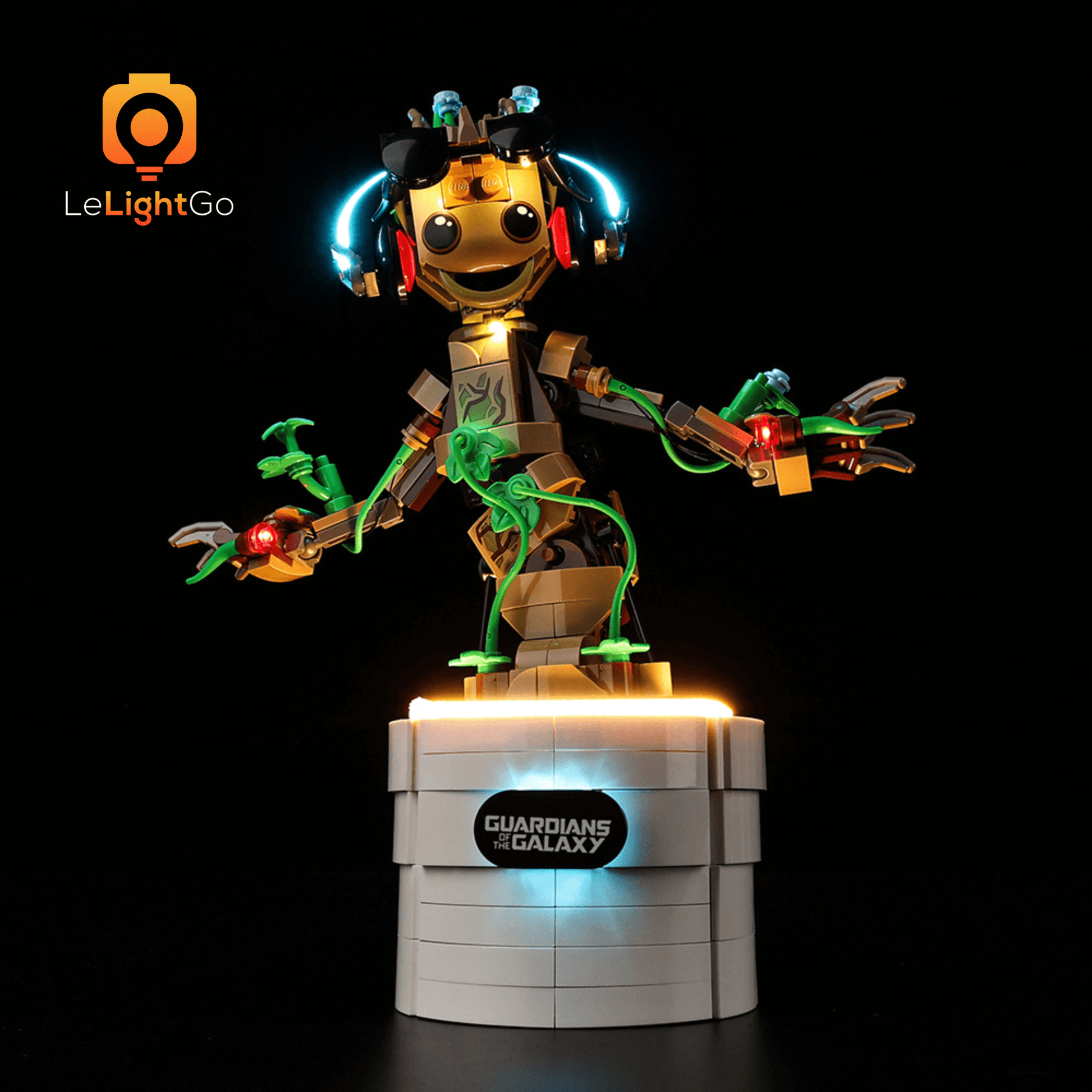 Bring magical shine to your Dancing Groot 76297. This lighting kit is designed especially for the Lego Marvel Dancing Groot 76297. This highly detailed Lego model is a spectacle in itself, but when paired with the LeLightGo lighting kit, the charming model comes alive, not only during the day but also at night.