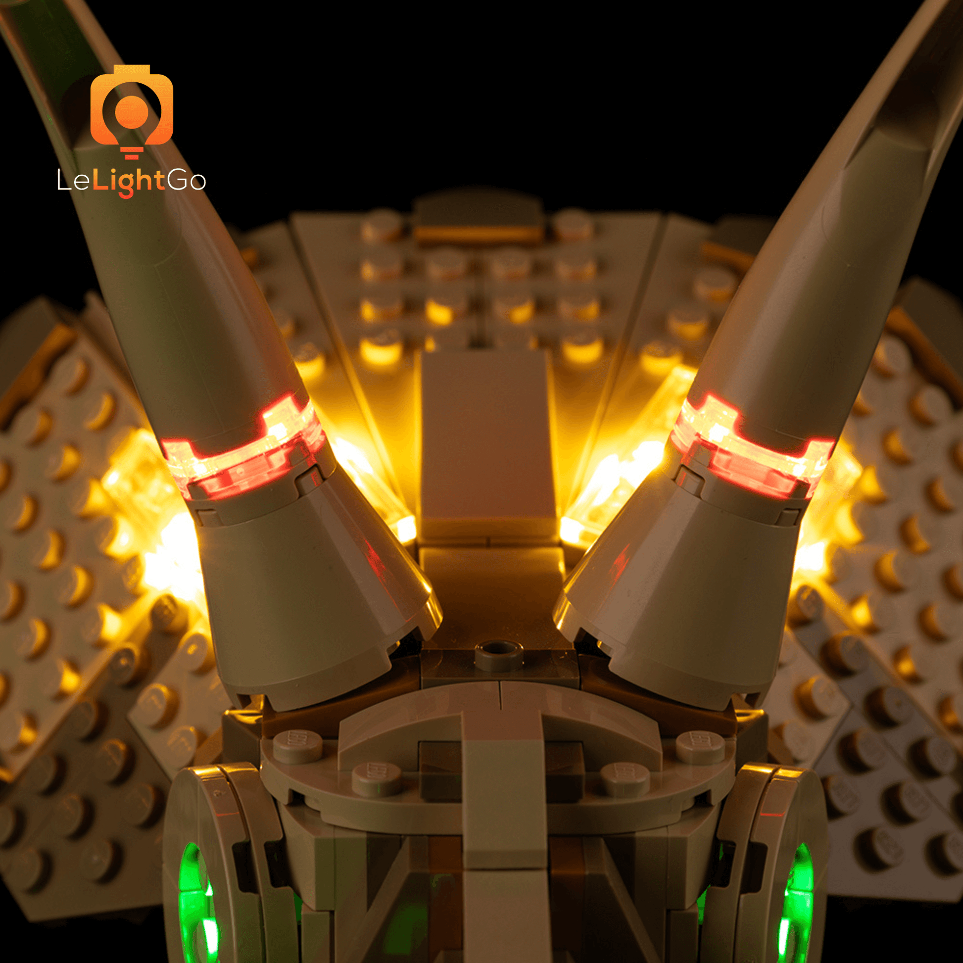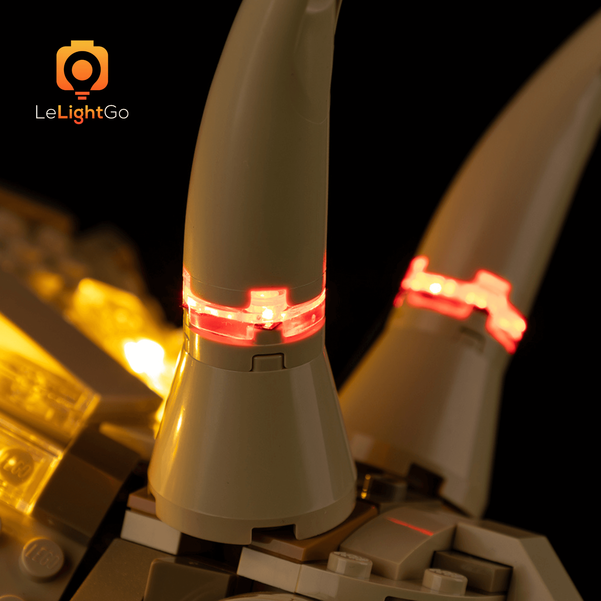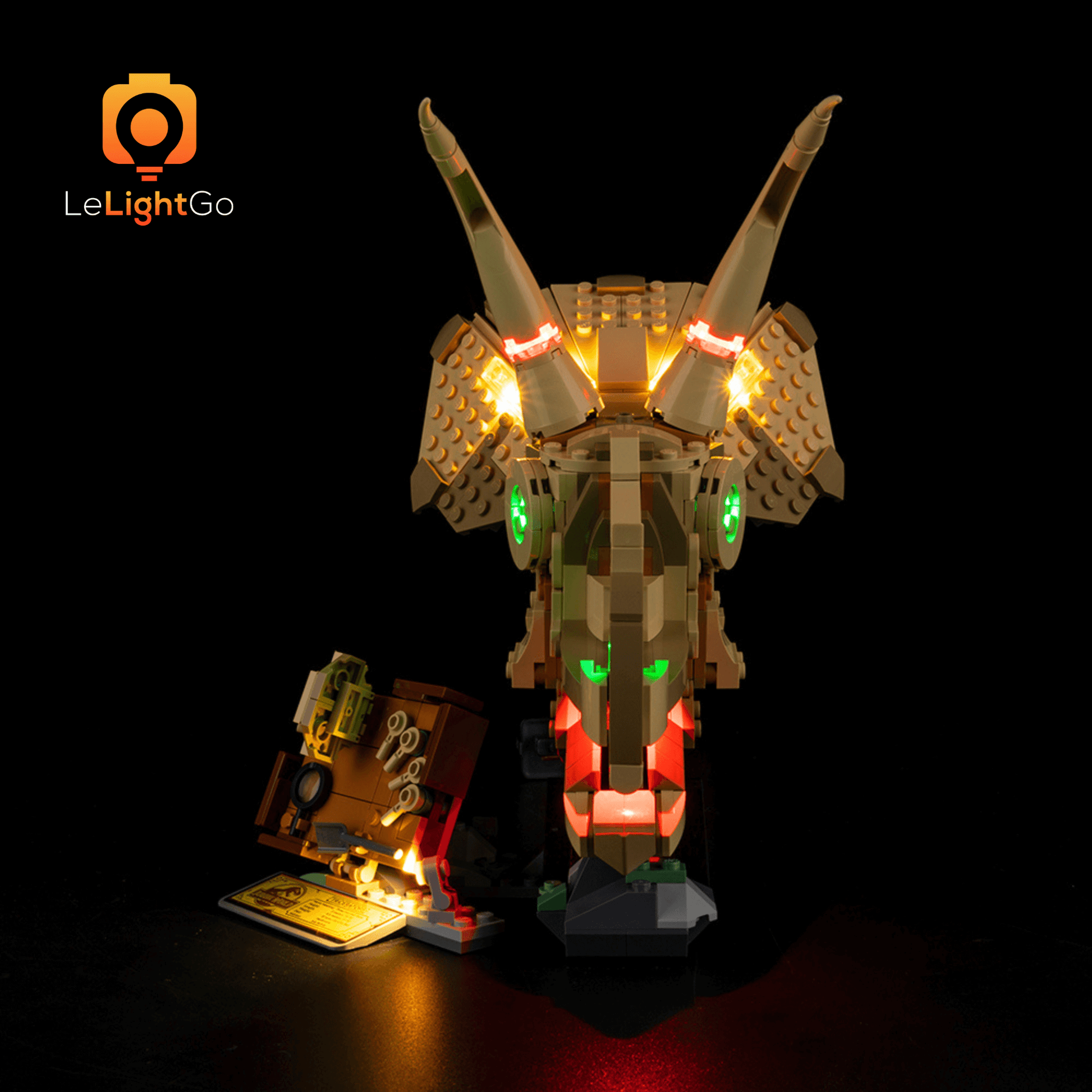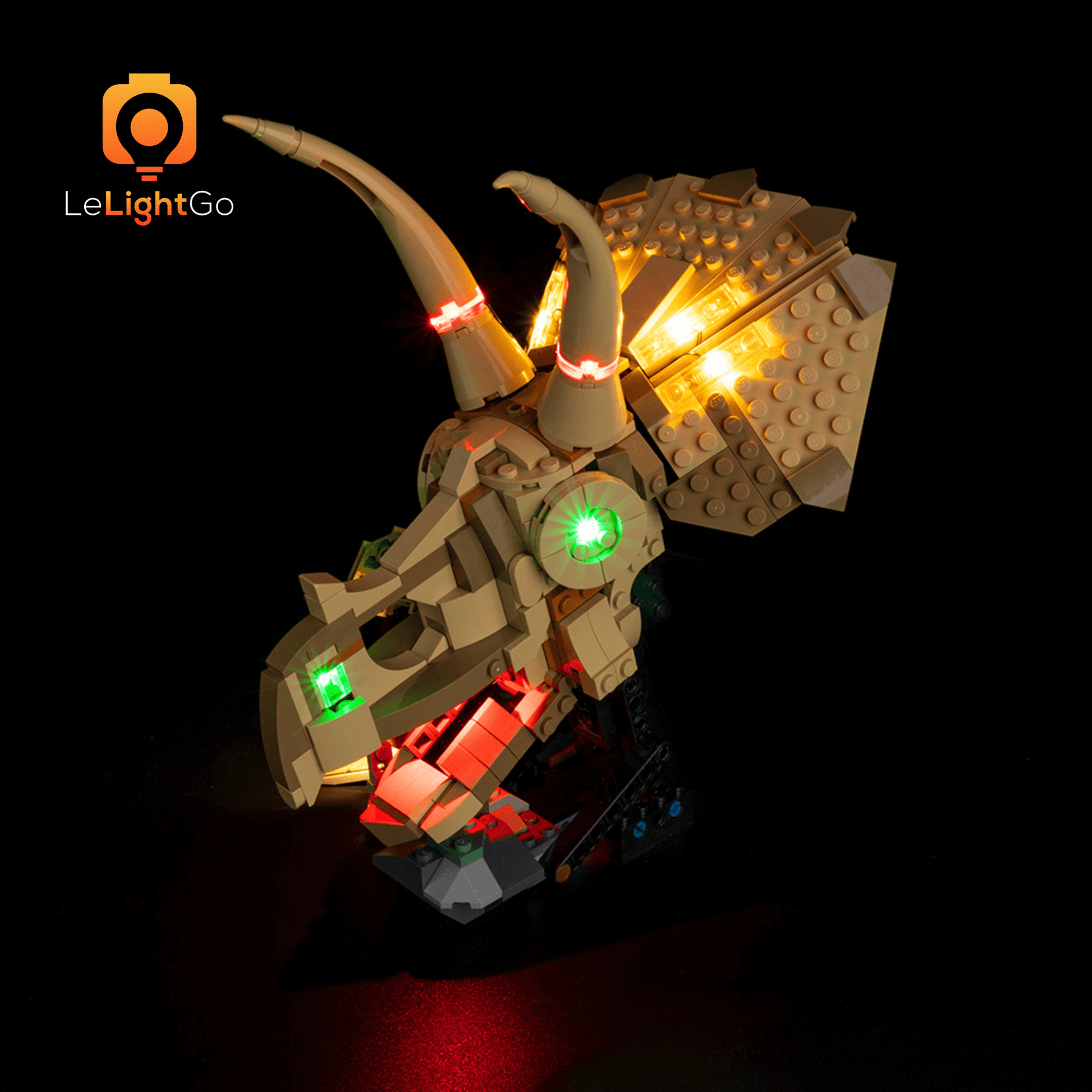 Bring magical shine to your Dinosaur Fossils: Triceratops Skull 76969. This lighting kit is designed especially for the Lego Jurassic World Dinosaur Fossils: Triceratops Skull 76969. This highly detailed Lego model is a spectacle in itself, but when paired with the LeLightGo lighting kit, the charming model comes alive, not only during the day but also at night.