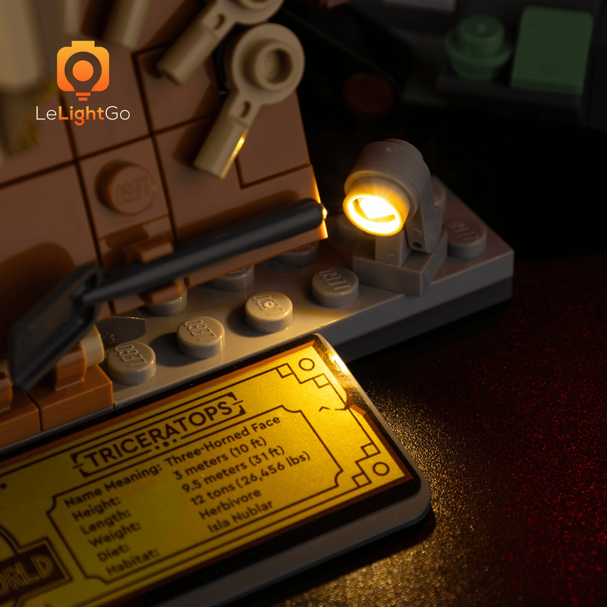 Follow LeLightGo step-by-step instructions to light up your Dinosaur Fossils: Triceratops Skull 76969, something amazing will happen at night. All our kits are plug-and-play - no electronics knowledge is needed!