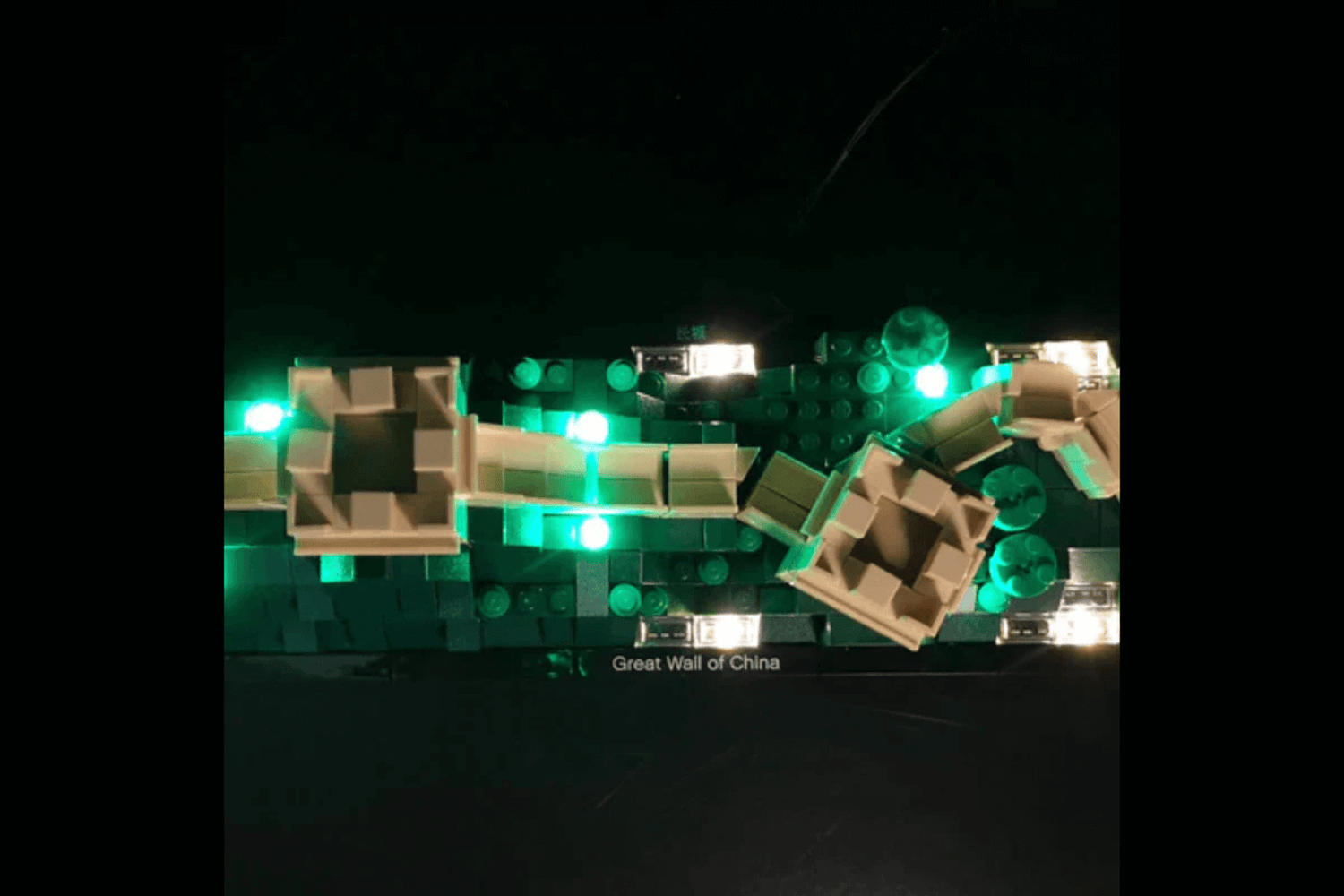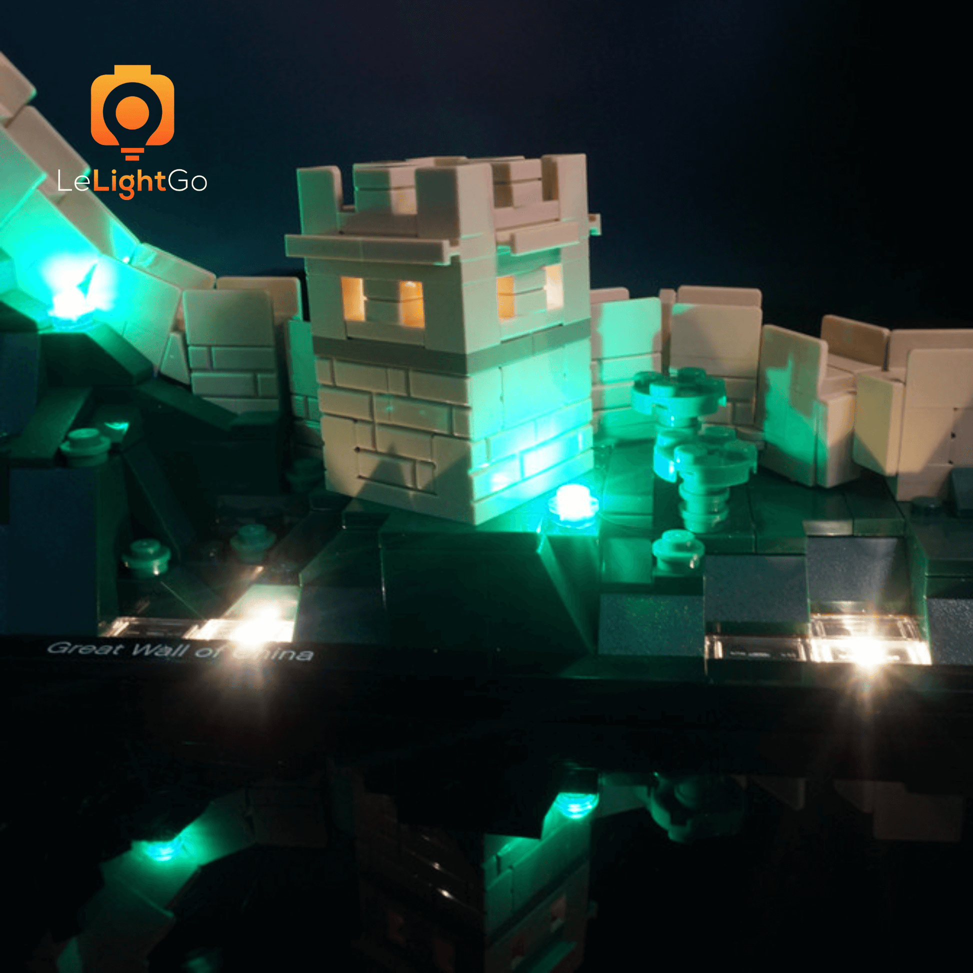 Bring magical shine to your Great Wall of China 21041. This lighting kit is designed especially for the Lego ARCHITECTURE Great Wall of China 21041. This highly detailed Lego model is a spectacle in itself, but when paired with the LeLightGo lighting kit, the charming model comes alive, not only during the day but also at night.