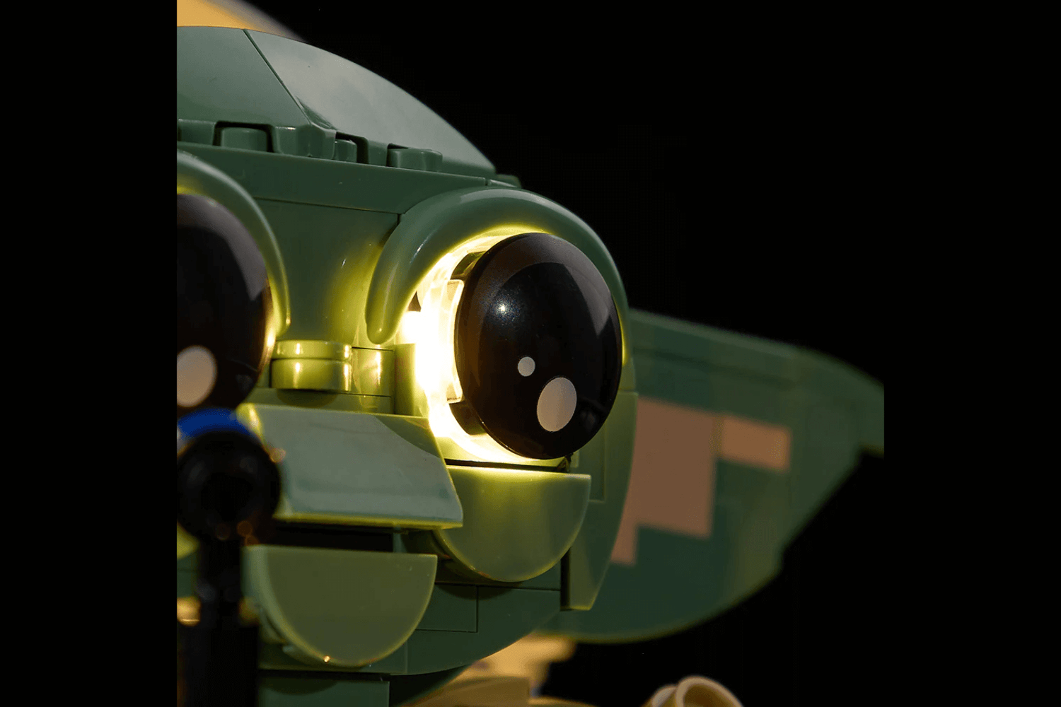 Glowing lights enhance Grogu’s sweet expressions and playful charm.