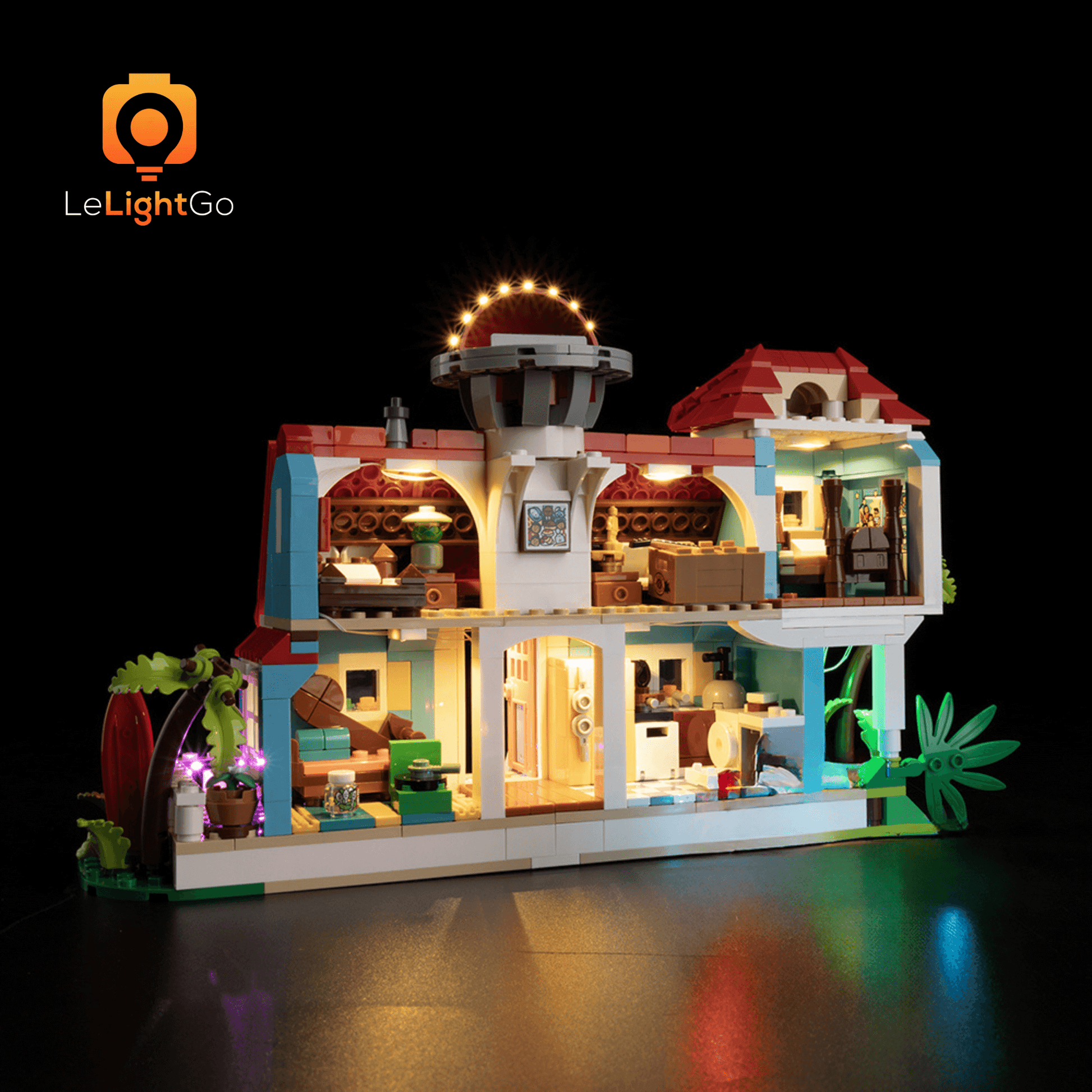 Bring magical shine to your Lilo and Stitch Beach House 43268. This lighting kit is designed especially for the Lego Disney Lilo and Stitch Beach House 43268 This highly detailed Lego model is a spectacle in itself, but when paired with the LeLightGo lighting kit, the charming model comes alive, not only during the day but also at night.