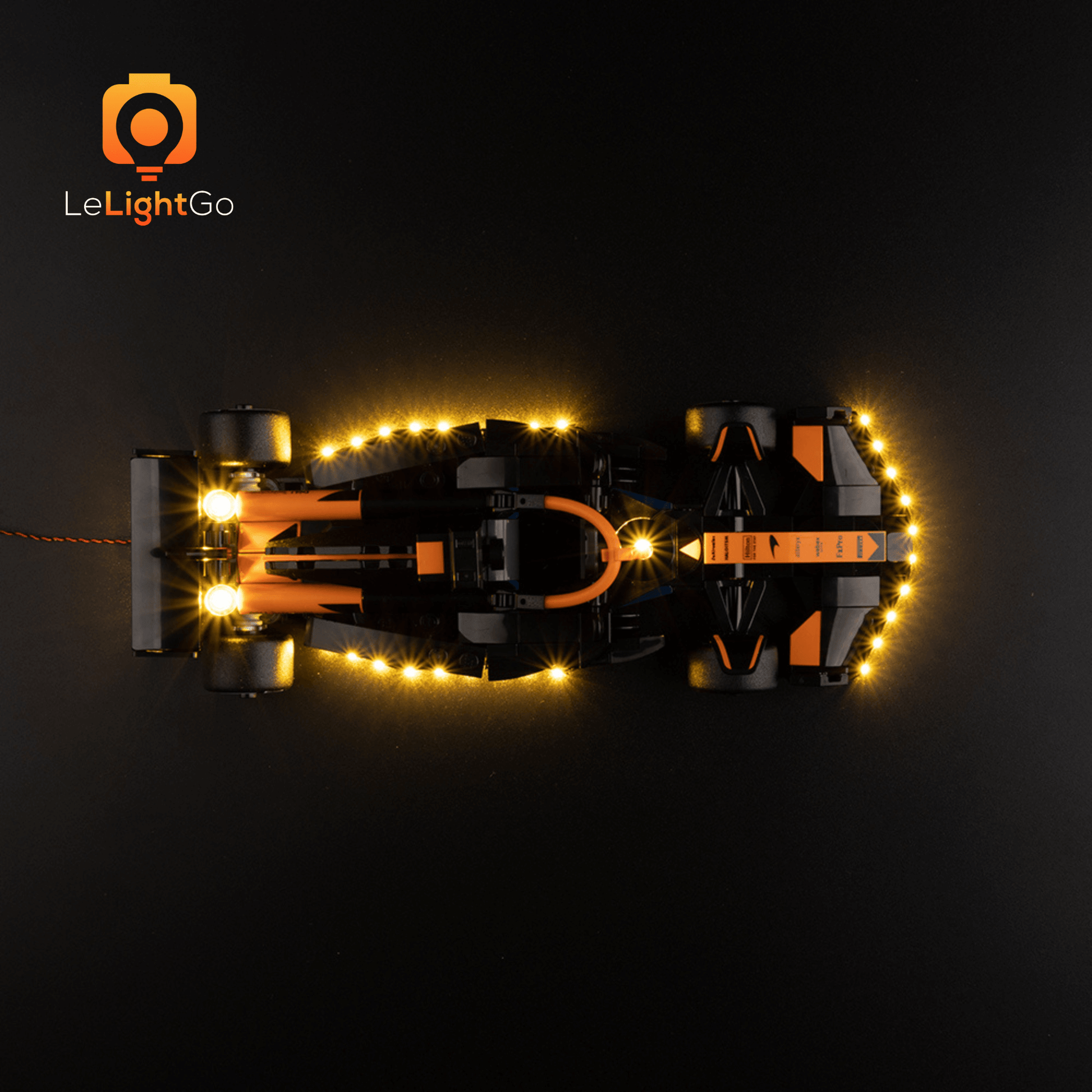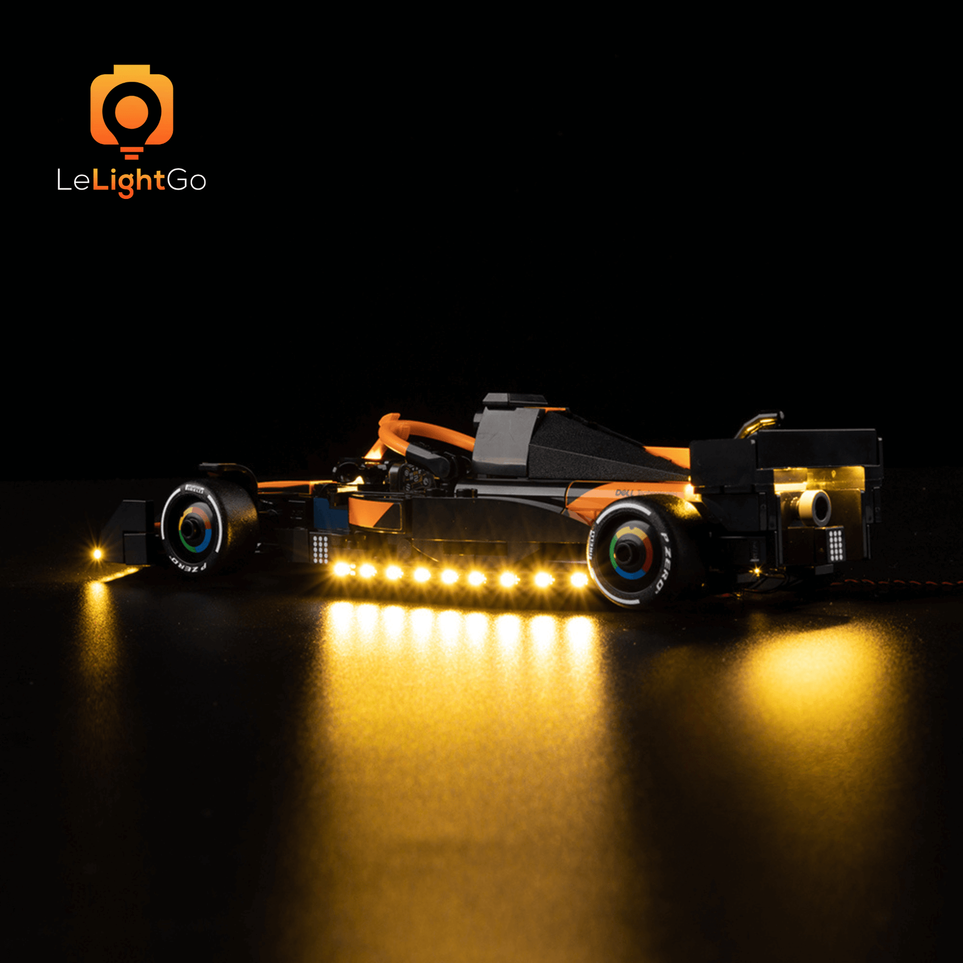 Bring magical shine to your McLaren F1 Team MCL38 Race Car 77251. This lighting kit is designed especially for the Lego Speed Champions McLaren F1 Team MCL38 Race Car 77251. This highly detailed Lego model is a spectacle in itself, but when paired with the LeLightGo lighting kit, the charming model comes alive, not only during the day but also at night.