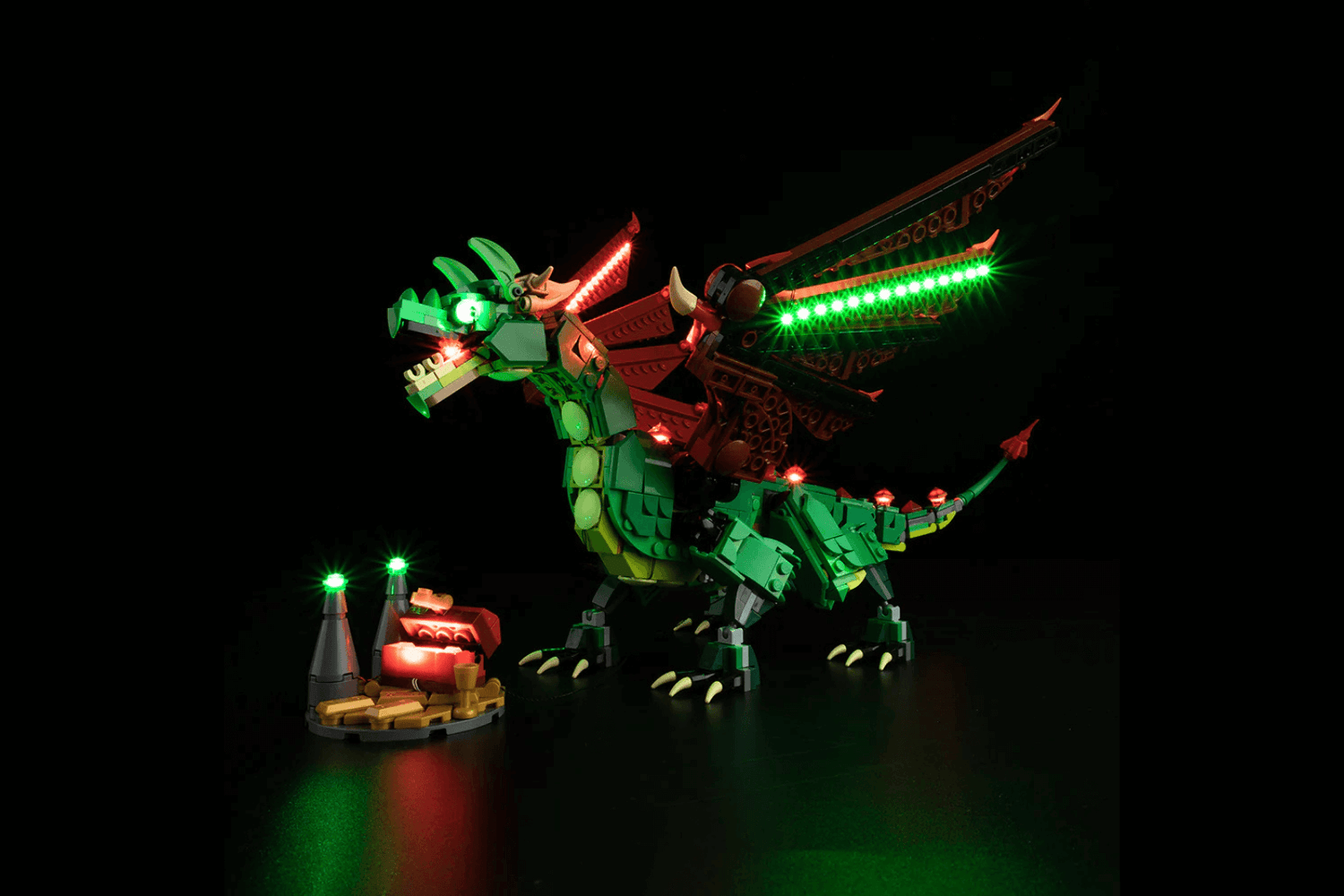 Follow LeLightGo step-by-step instructions to light up your Medieval Dragon 31161reat, something amazing will happen at night. All our kits are plug-and-play - no electronics knowledge is needed!