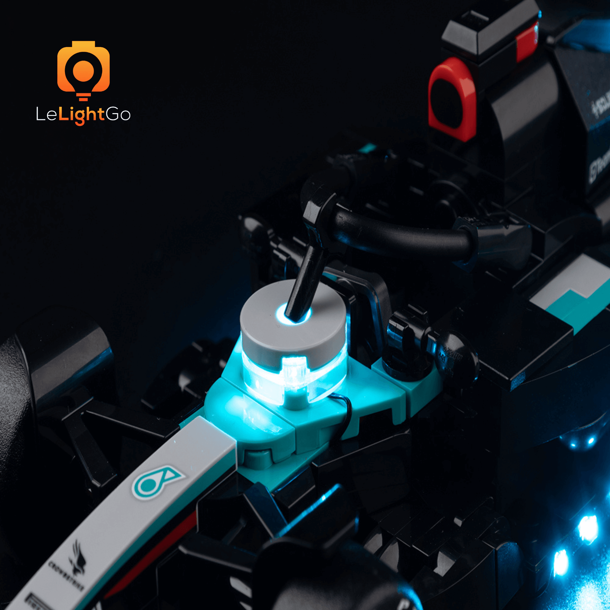 Bring magical shine to your Mercedes-AMG F1 W15 Race Car 77244. This lighting kit is designed especially for the Lego Speed Champions Mercedes-AMG F1 W15 Race Car 77244. This highly detailed Lego model is a spectacle in itself, but when paired with the LeLightGo lighting kit, the charming model comes alive, not only during the day but also at night.