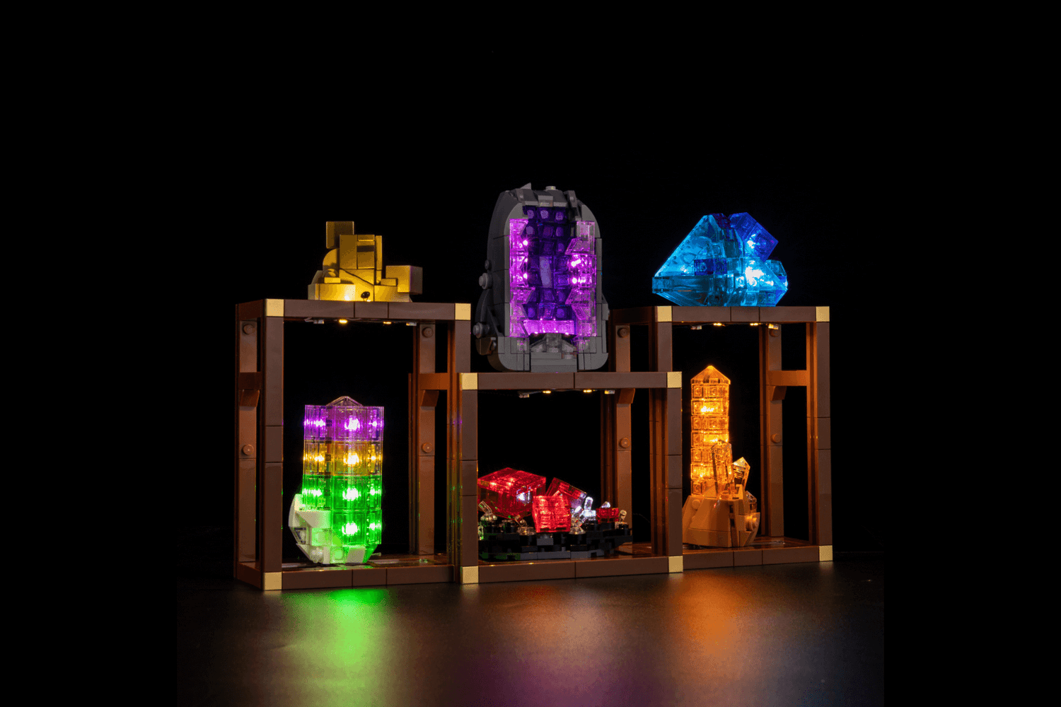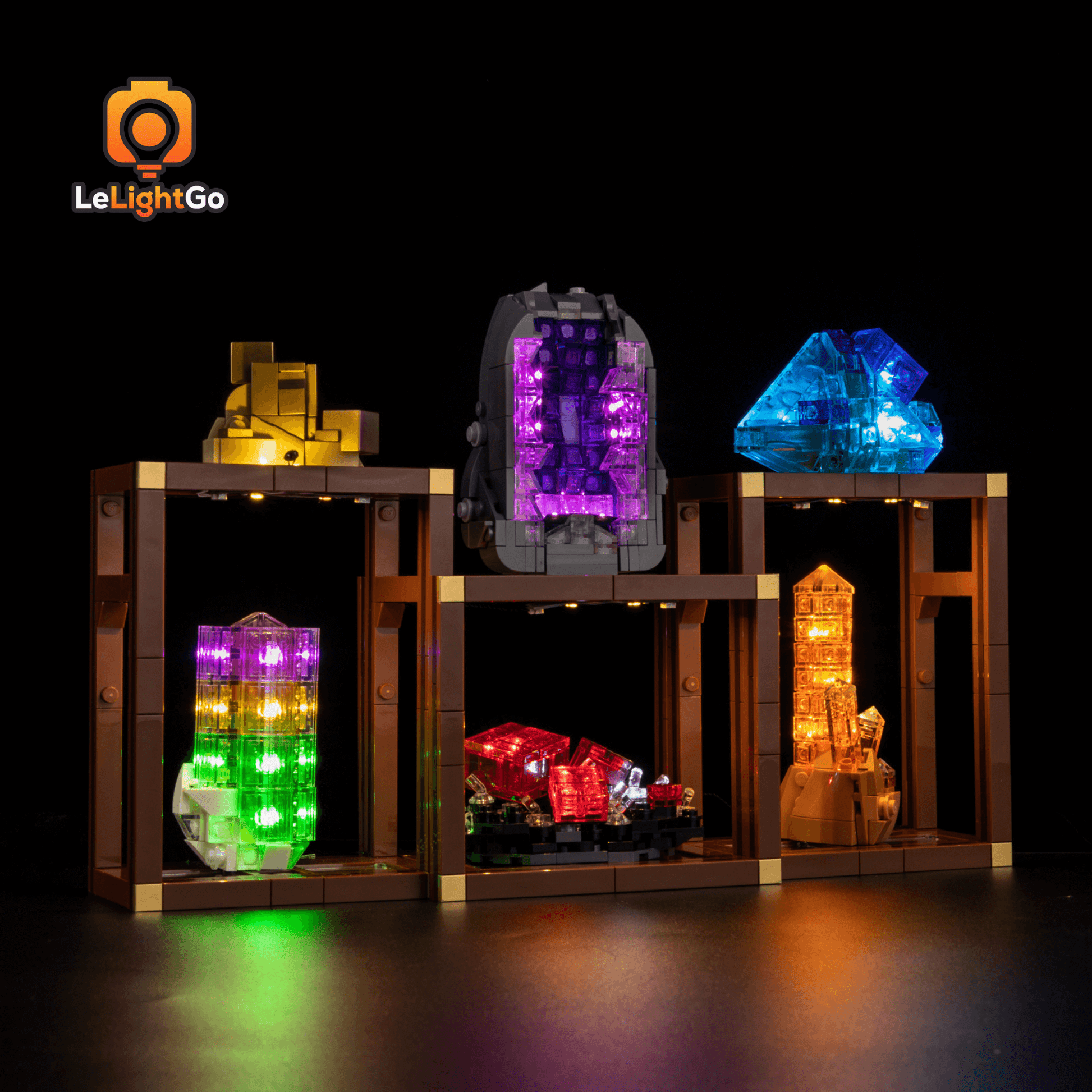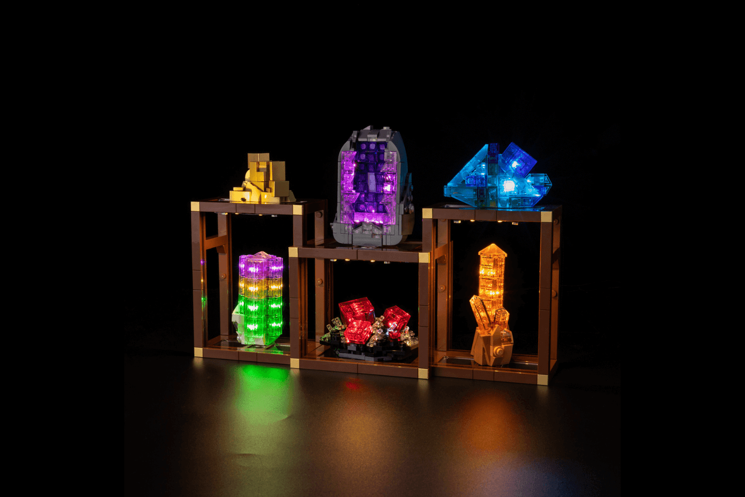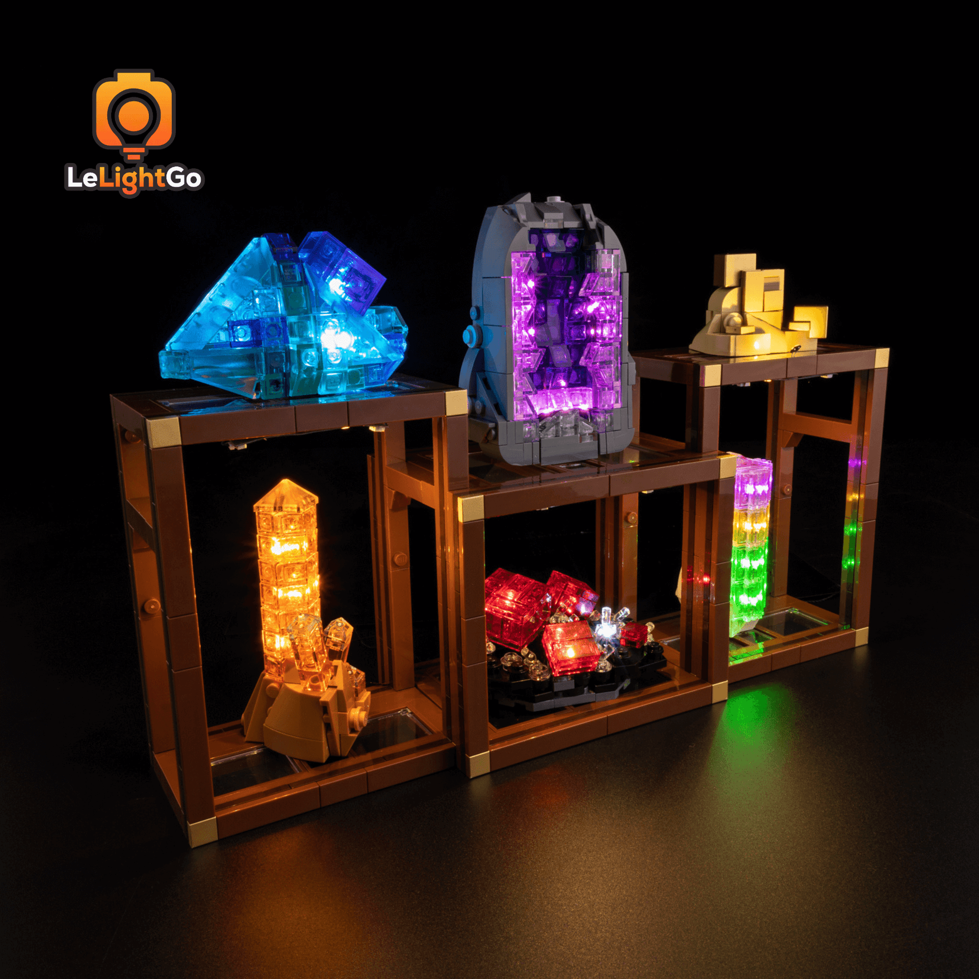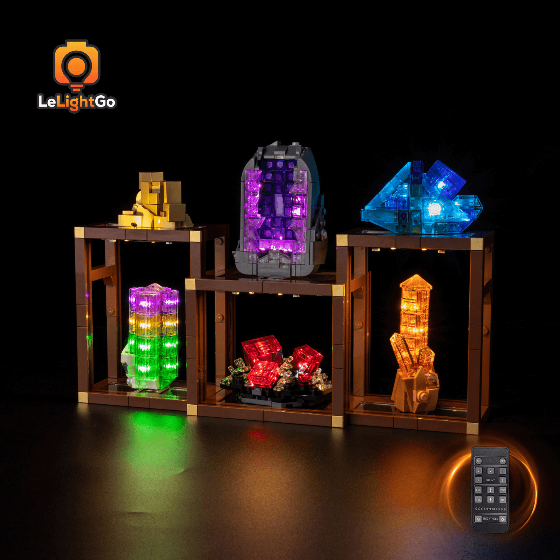 Bring magical shine to your Mineral Collection 21362. This lighting kit is designed especially for the Lego Ideas Mineral Collection 21362. This highly detailed Lego model is a spectacle in itself, but when paired with the LeLightGo lighting kit, the charming model comes alive, not only during the day but also at night.
