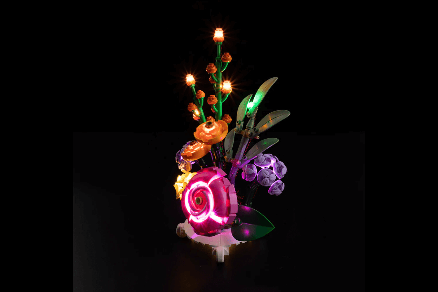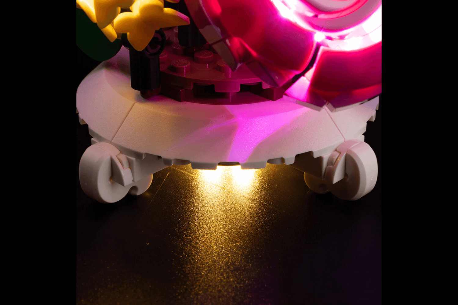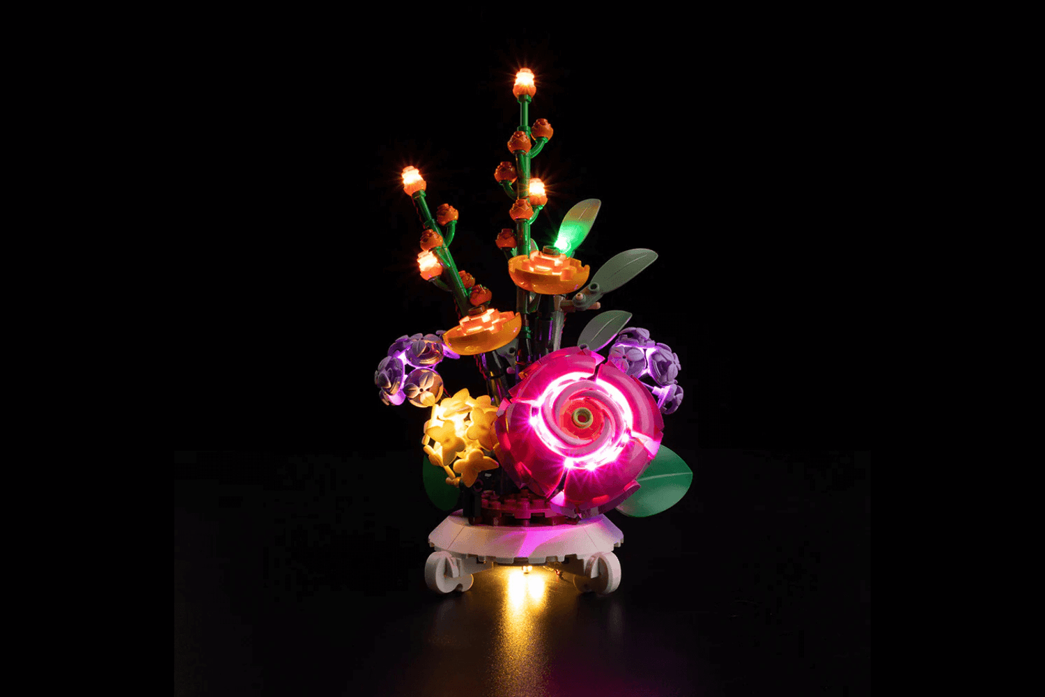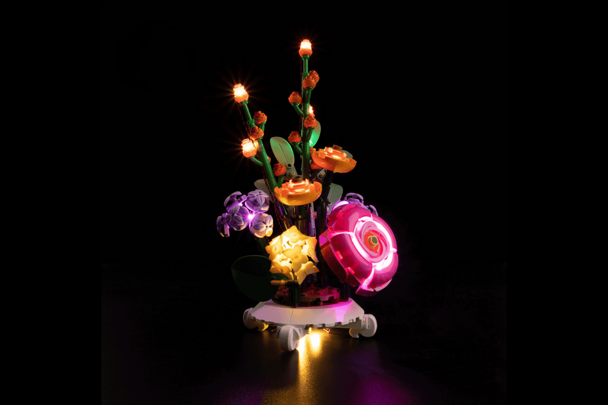 Bring magical shine to your Mixed Flowerpot 40762. This lighting kit is designed especially for the Lego Botanicals Mixed Flowerpot 40762. This highly detailed Lego model is a spectacle in itself, but when paired with the LeLightGo lighting kit, the charming model comes alive, not only during the day but also at night.