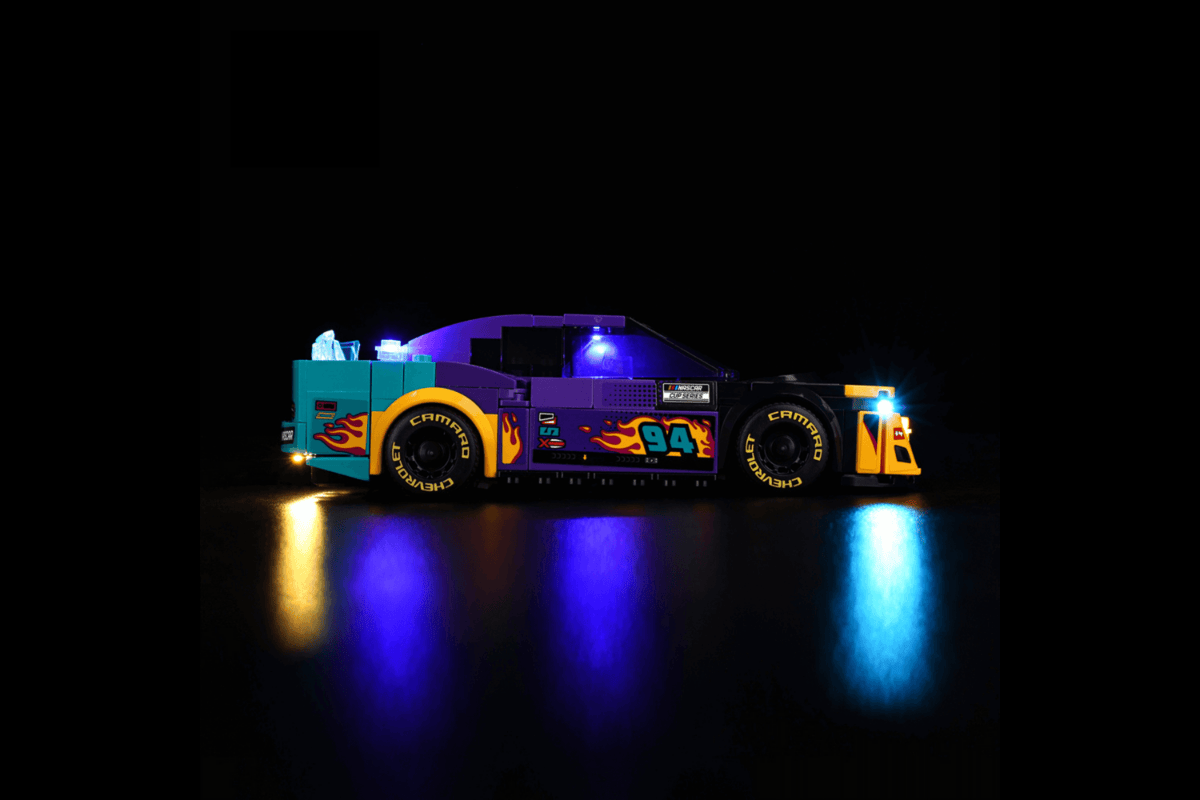 Bring magical shine to your NASCAR Next Gen Chevrolet Camaro ZL1 76935. This lighting kit is designed especially for the Lego Speed Champions NASCAR Next Gen Chevrolet Camaro ZL1 76935. This highly detailed Lego model is a spectacle in itself, but when paired with the LeLightGo lighting kit, the charming model comes alive, not only during the day but also at night.