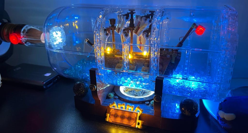 Turn your Ship in a Bottle LEGO® Set into a glowing masterpiece that feels alive.