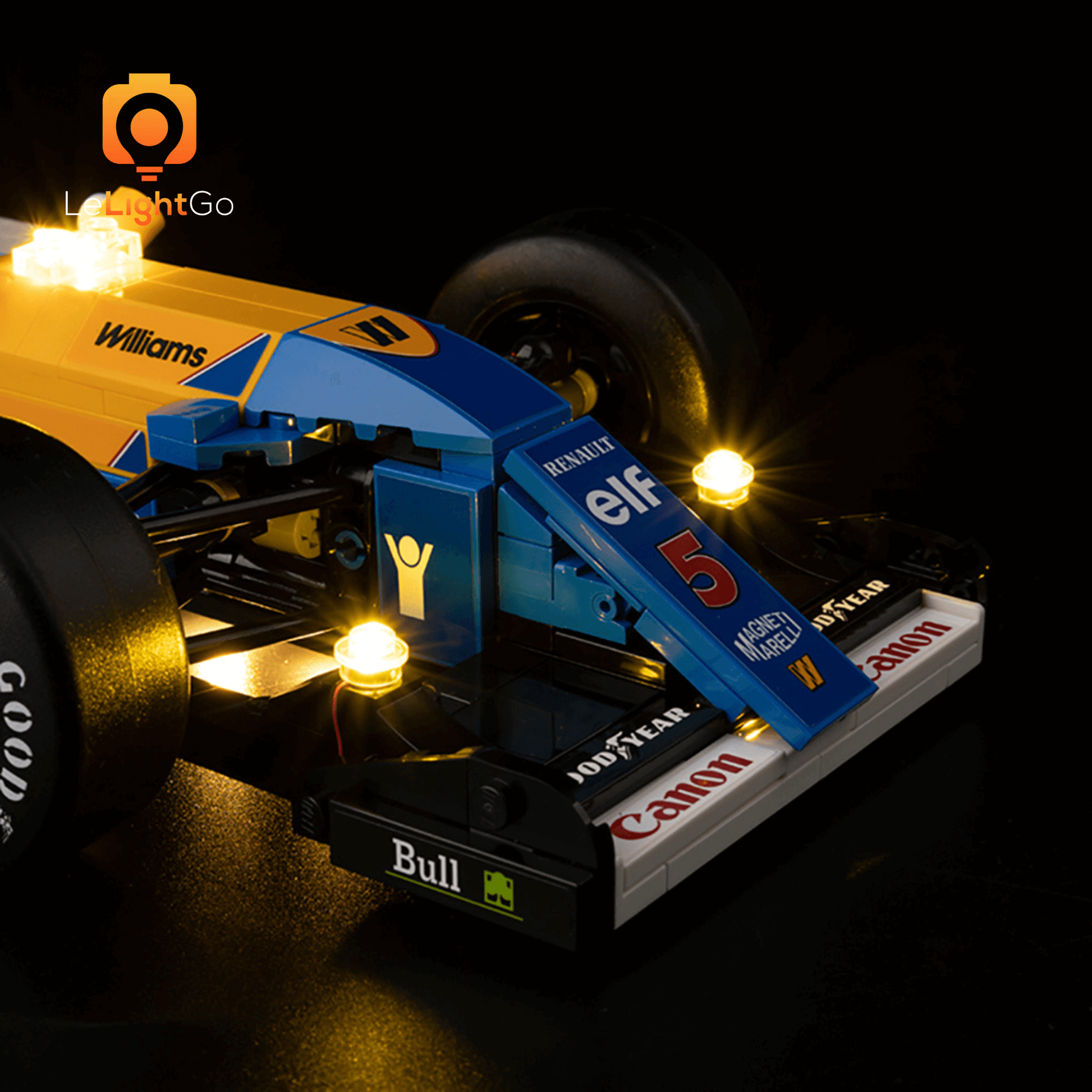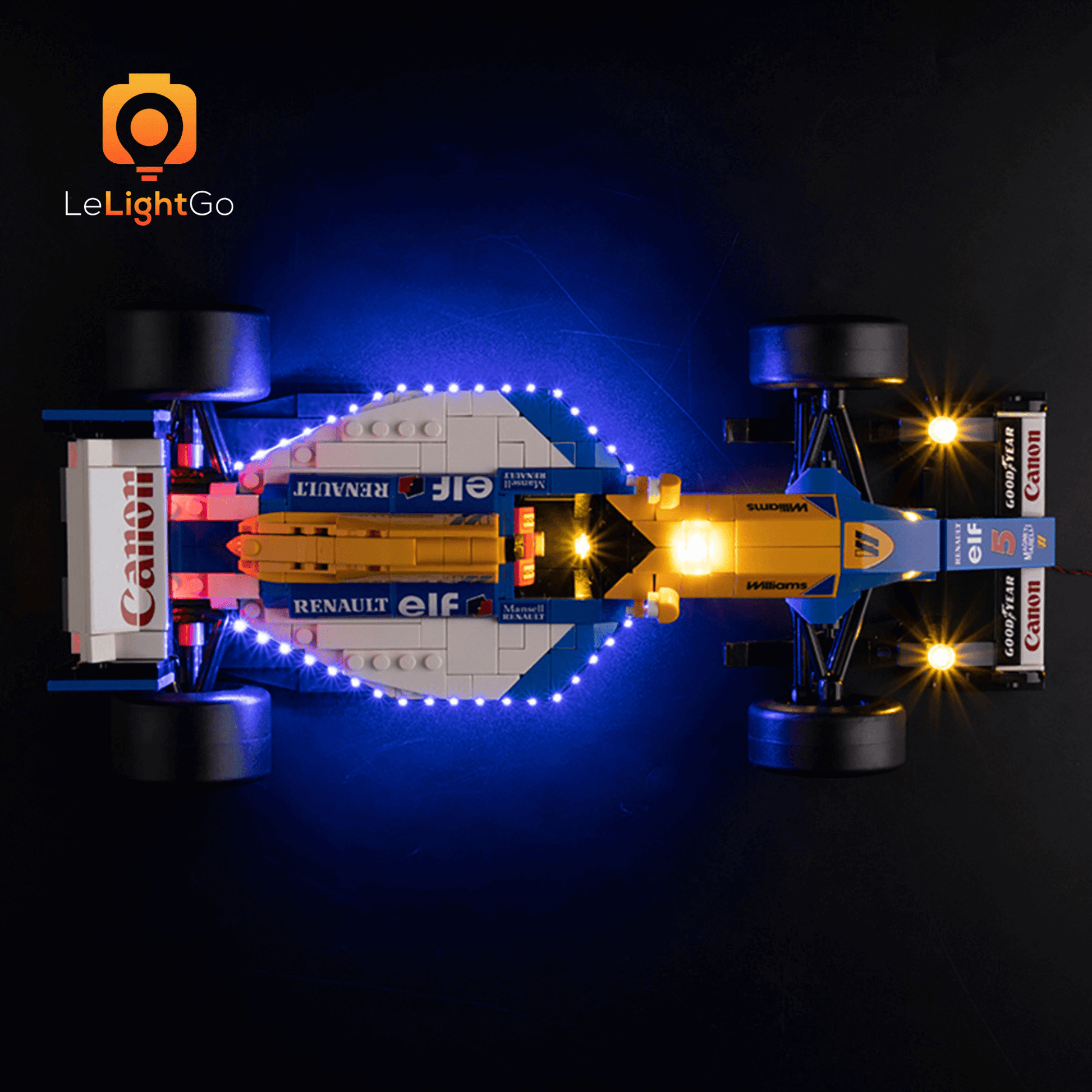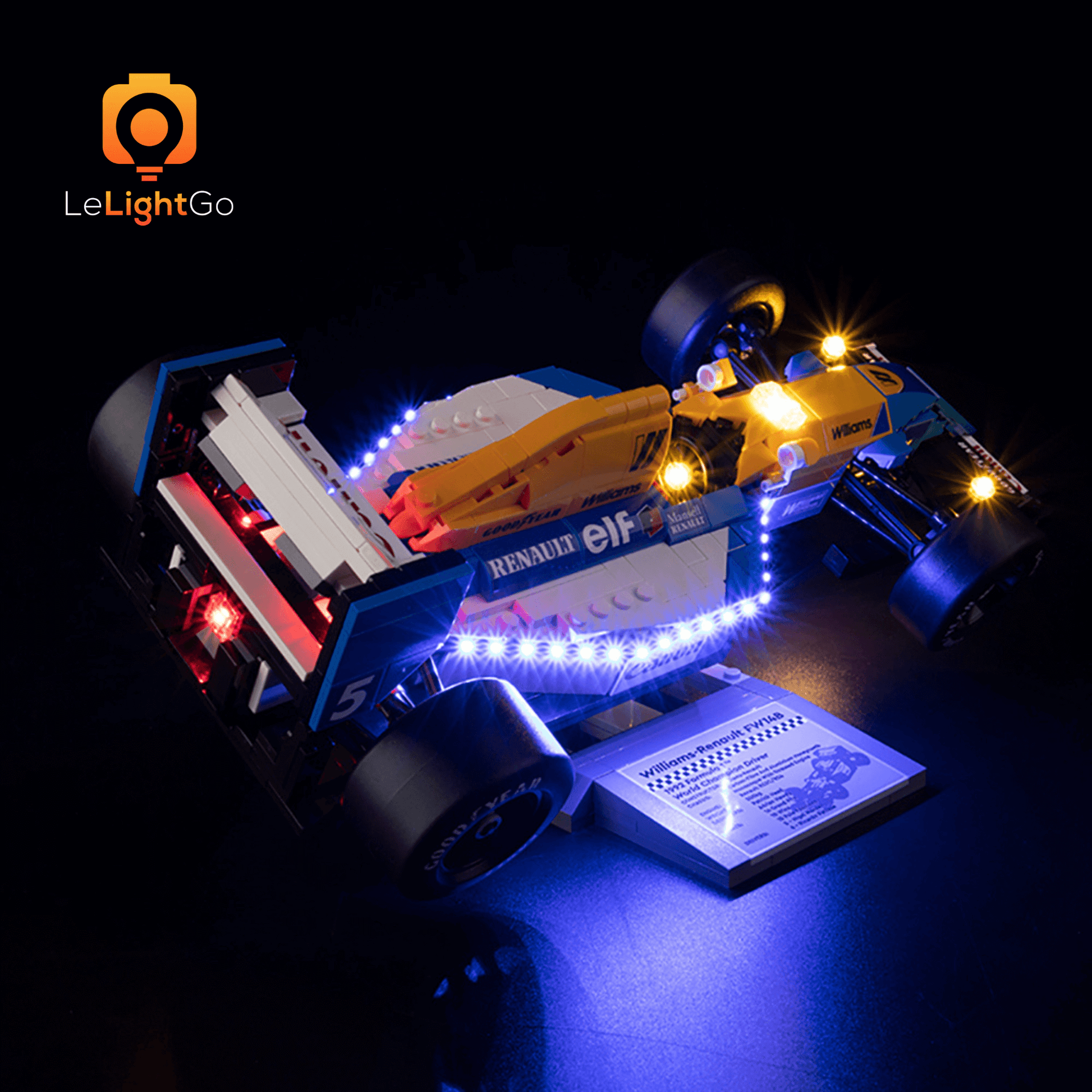 Bring magical shine to your Williams Racing FW14B & Nigel Mansell 10353. This lighting kit is designed especially for the Lego ICONS. This highly detailed Lego model is a spectacle in itself, but when paired with the LeLightGo lighting kit, the charming model comes alive, not only during the day but also at night.