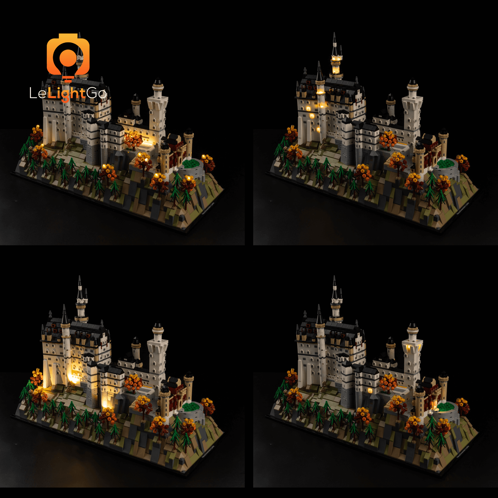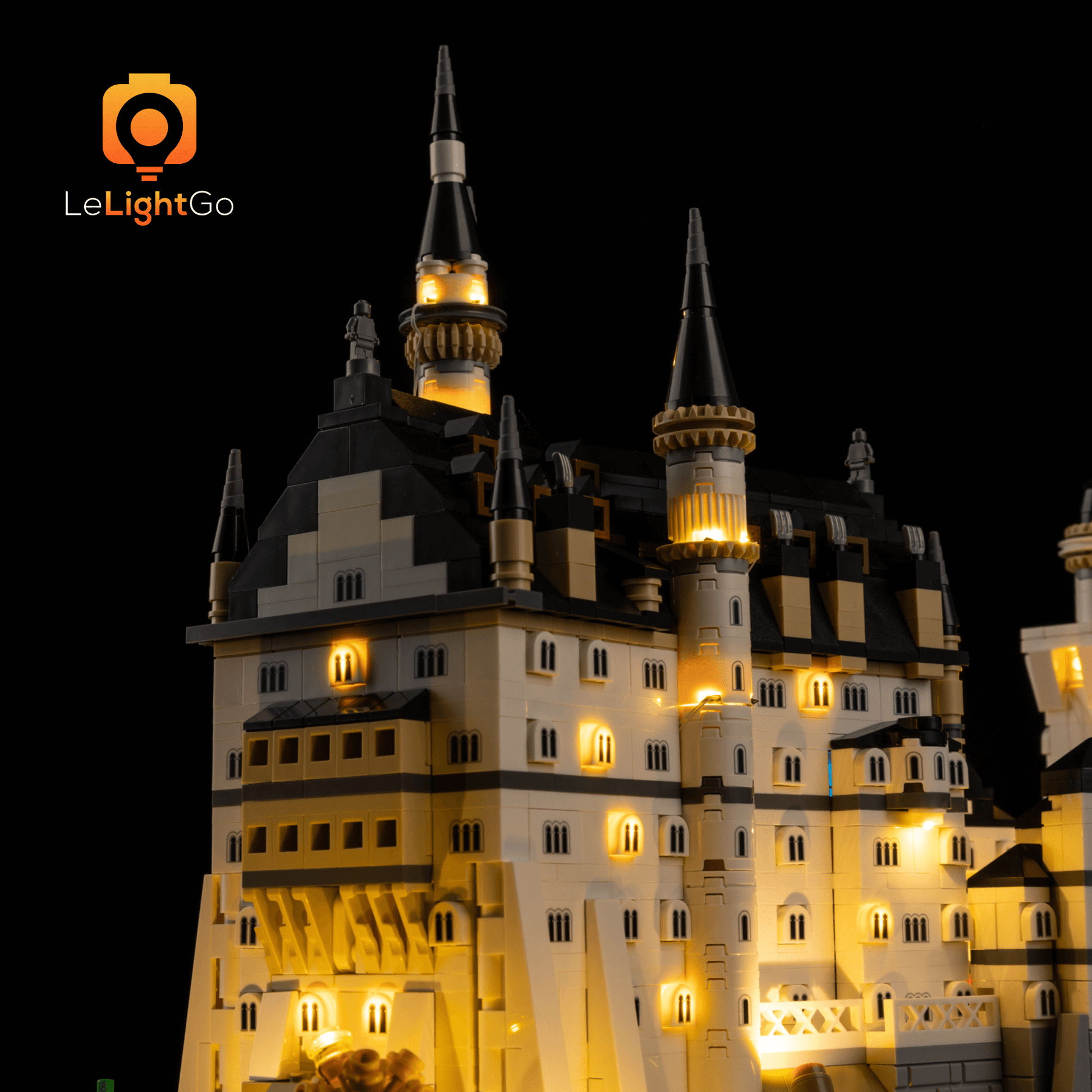 Bring magical shine to your Neuschwanstein Castle 21063. This lighting kit is designed especially for the Lego ARCHITECTURE Neuschwanstein Castle 21063. This highly detailed Lego model is a spectacle in itself, but when paired with the LeLightGo lighting kit, the charming model comes alive, not only during the day but also at night.