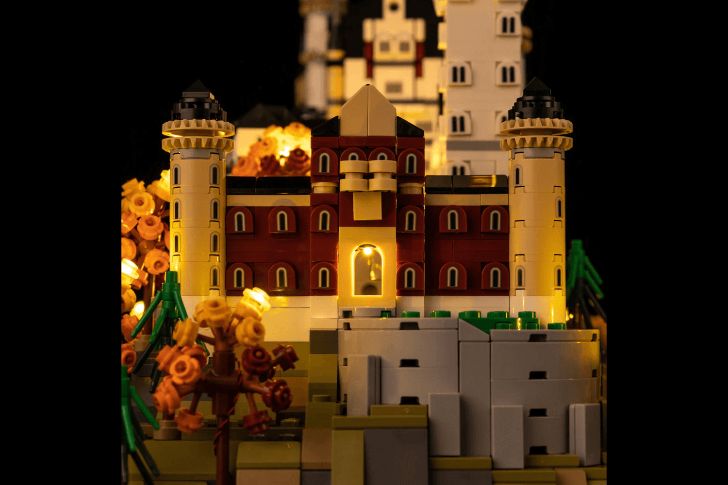 Turn your Neuschwanstein Castle LEGO® Set into a glowing masterpiece that feels alive.