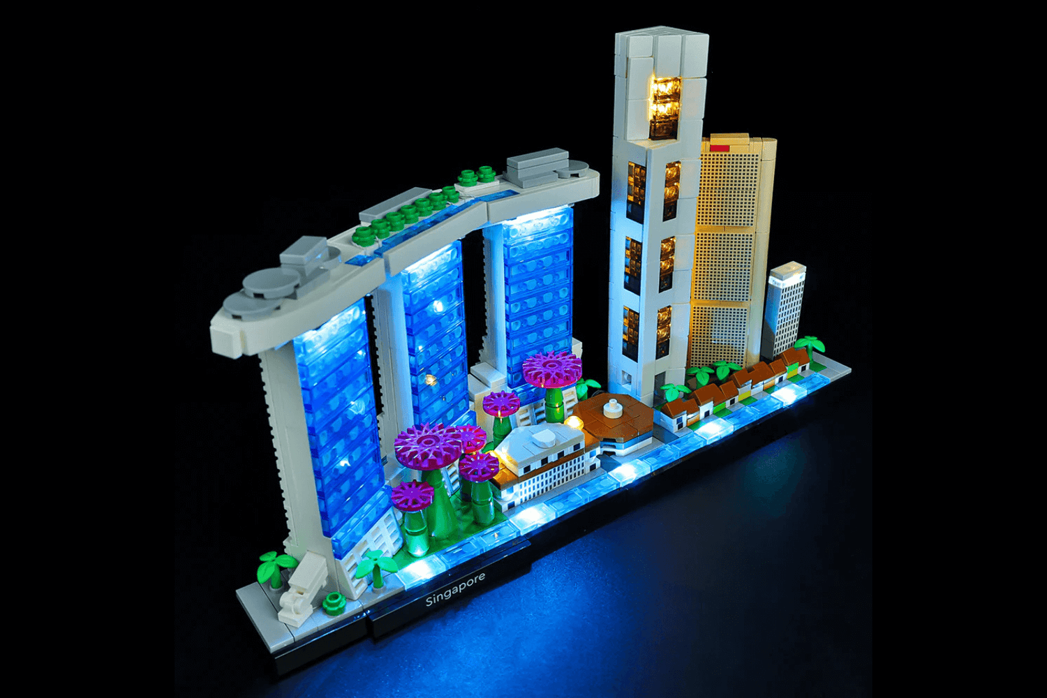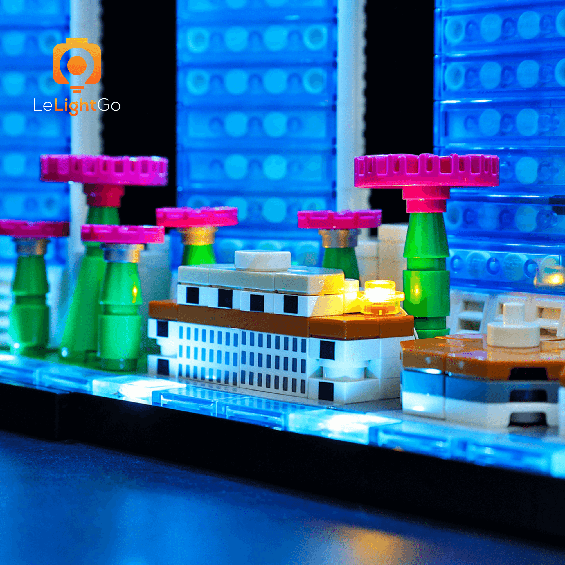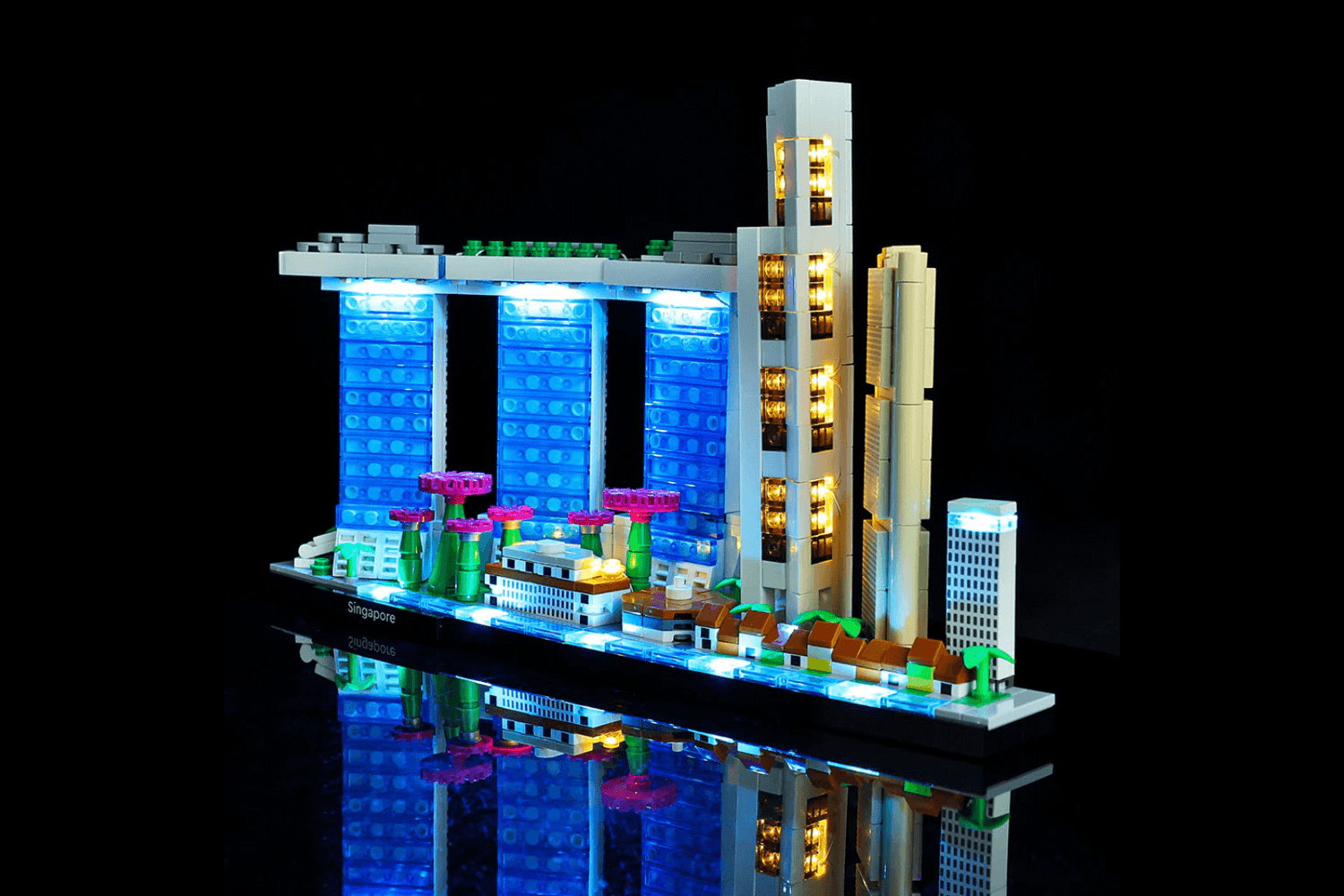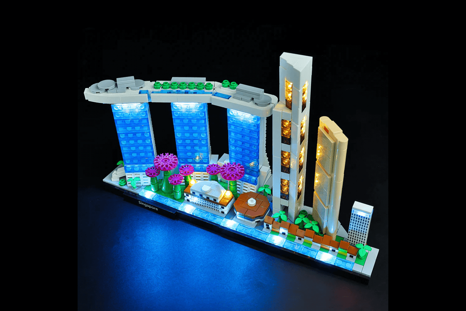 Bring magical shine to your Singapore 21057. This lighting kit is designed especially for the Lego ARCHITECTURE Singapore 21057. This highly detailed Lego model is a spectacle in itself, but when paired with the LeLightGo lighting kit, the charming model comes alive, not only during the day but also at night.