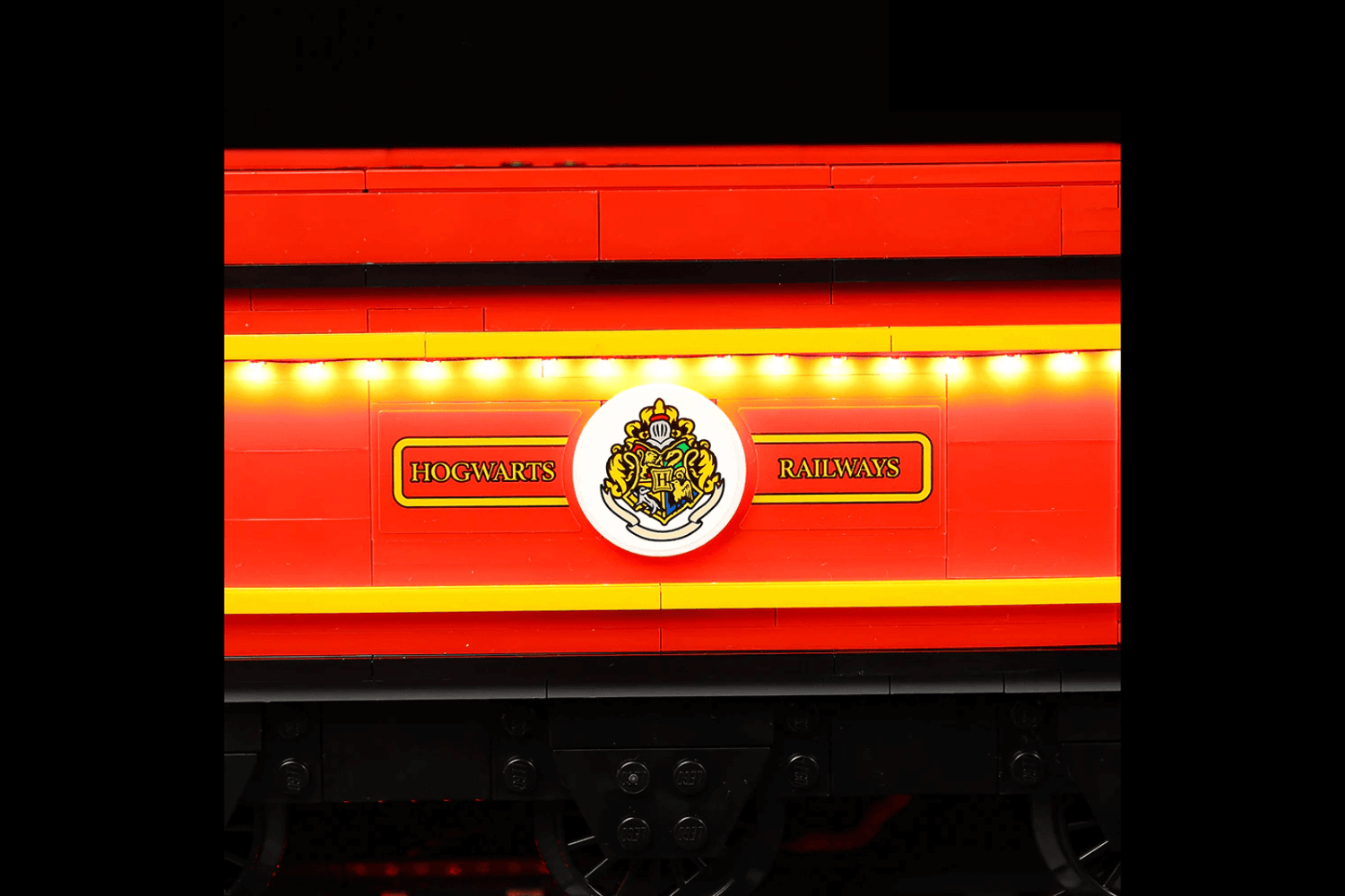 Fine lighting reveals every Hogwarts Railway emblem and mark.