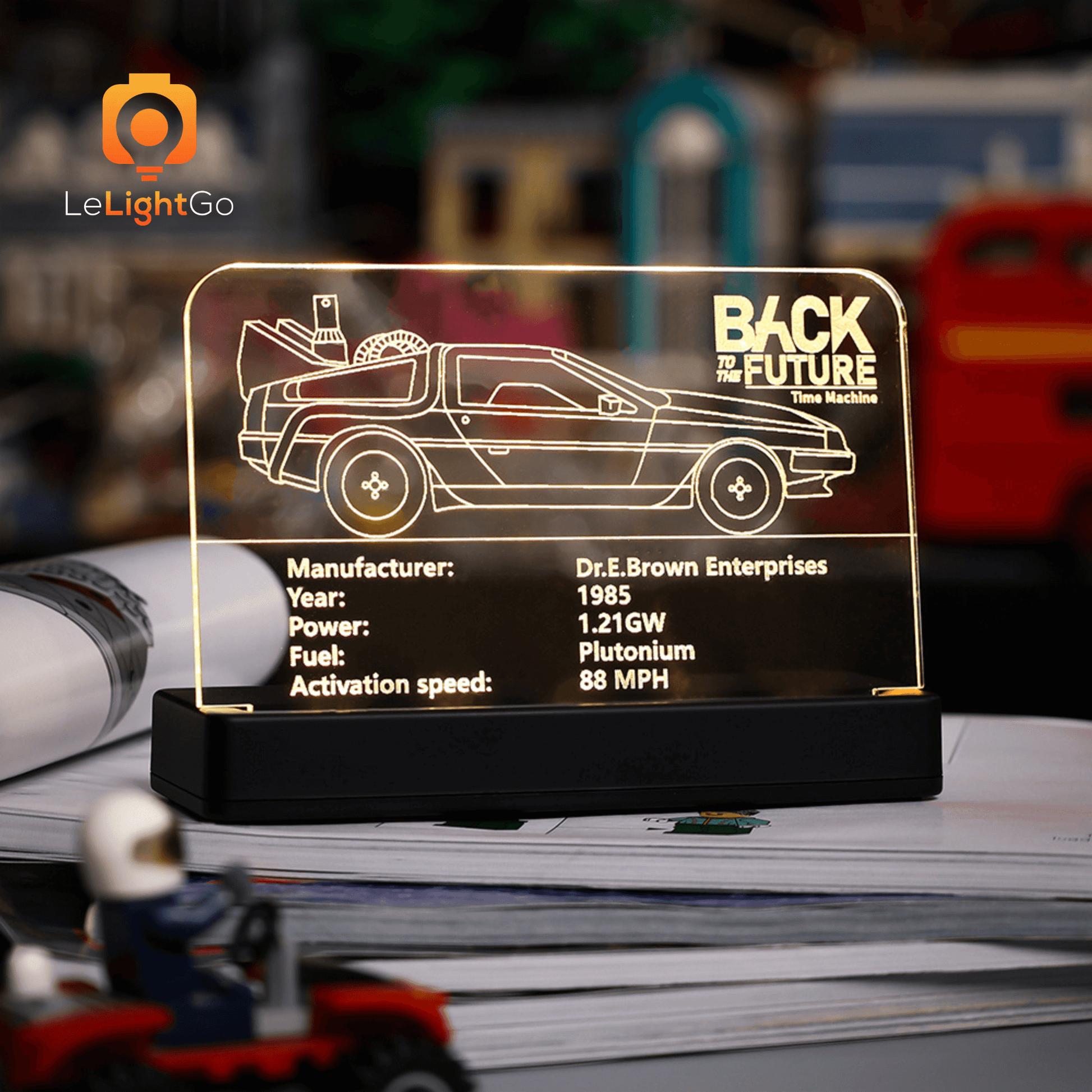 - Clear acrylic nameplate is designed specifically for the Back to the Future Time Machine Lego set, the personalized nameplates with graphics and basic information about the LEGO set.