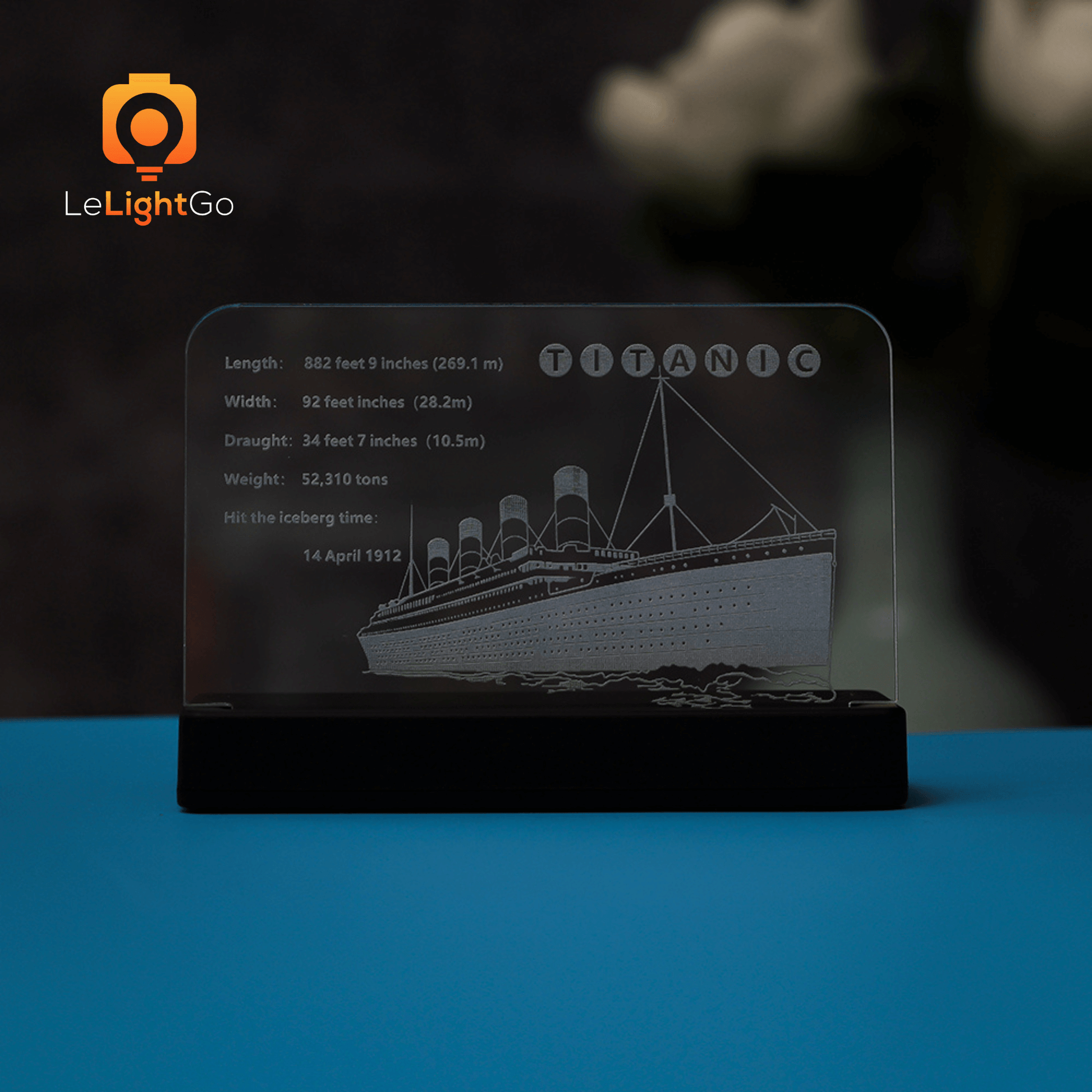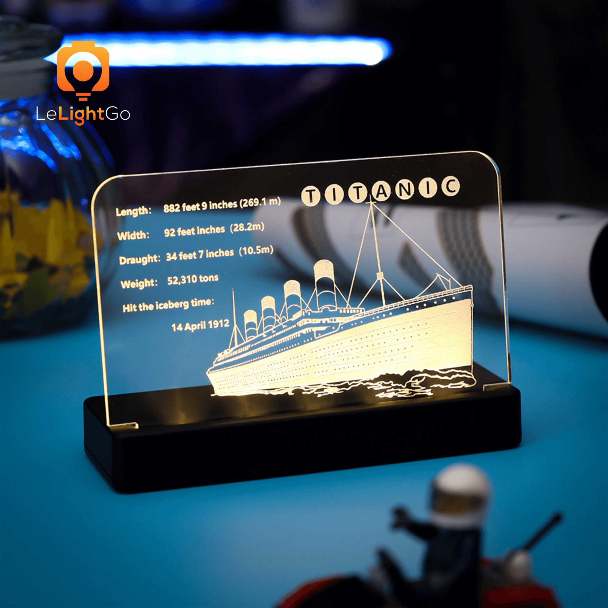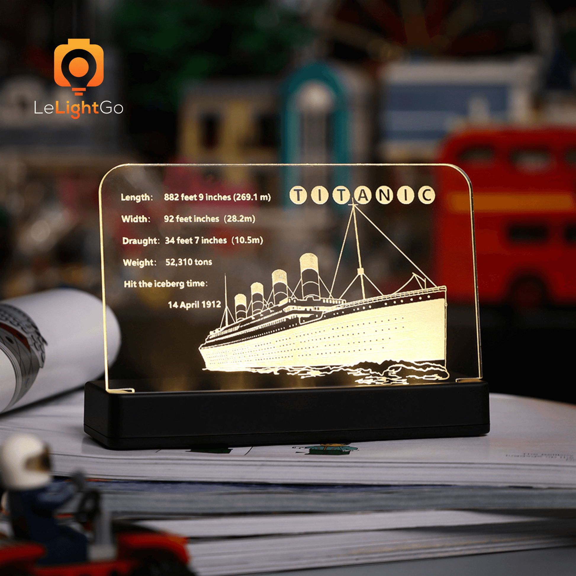 Making Titanic LEGO set more entertaining to see is different from actually building it. Use our fantastic LED Nameplates for LEGO Titanic to exhibit your favorite Titanic set. The nameplates artfully display the set's name along with fascinating facts about the model, the function, the type of the set, and other exciting details.