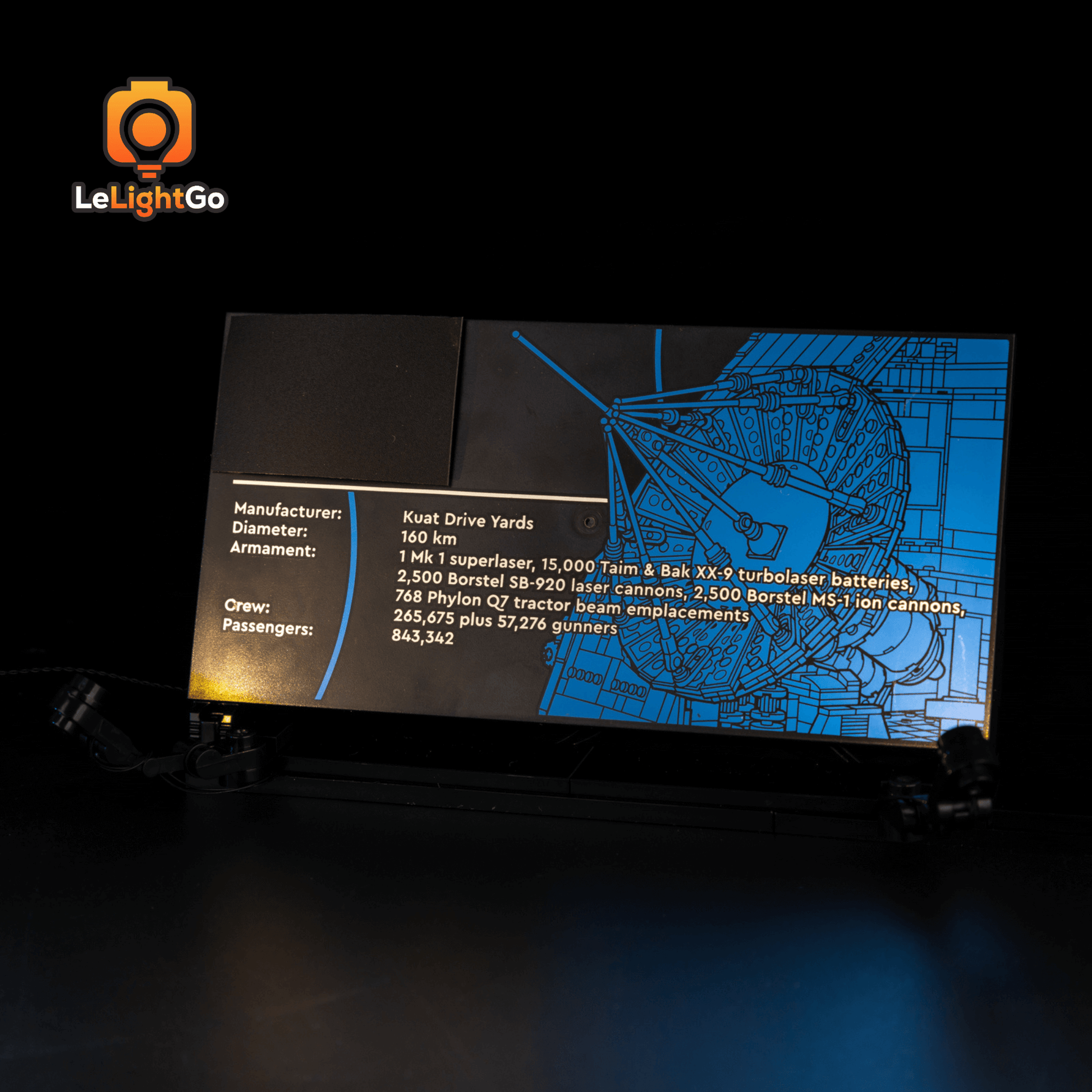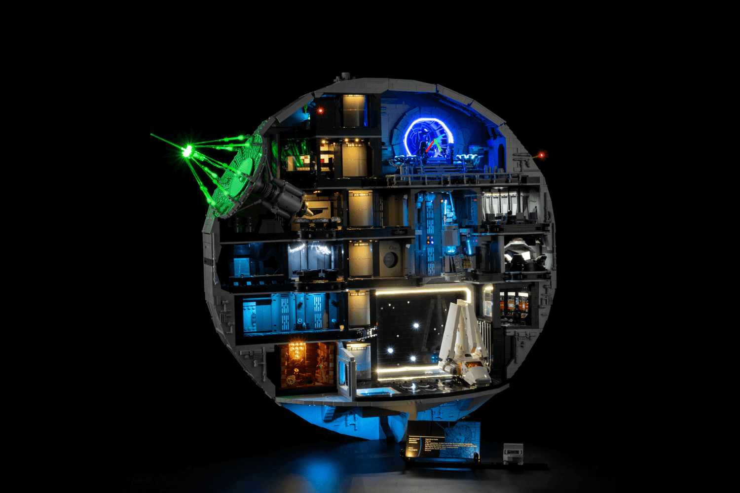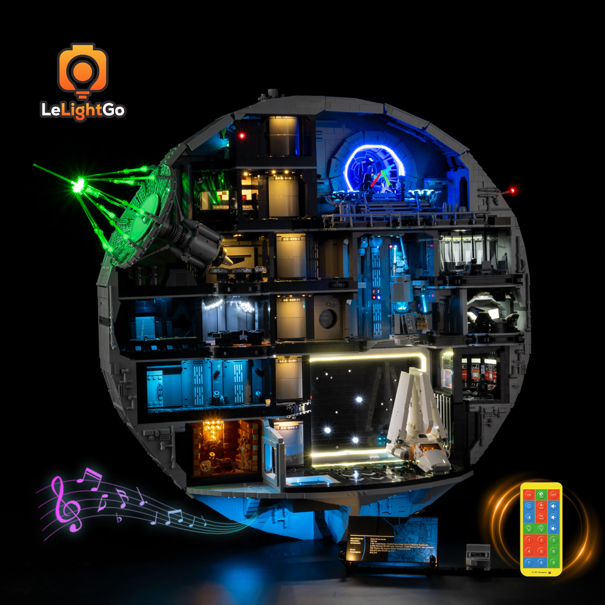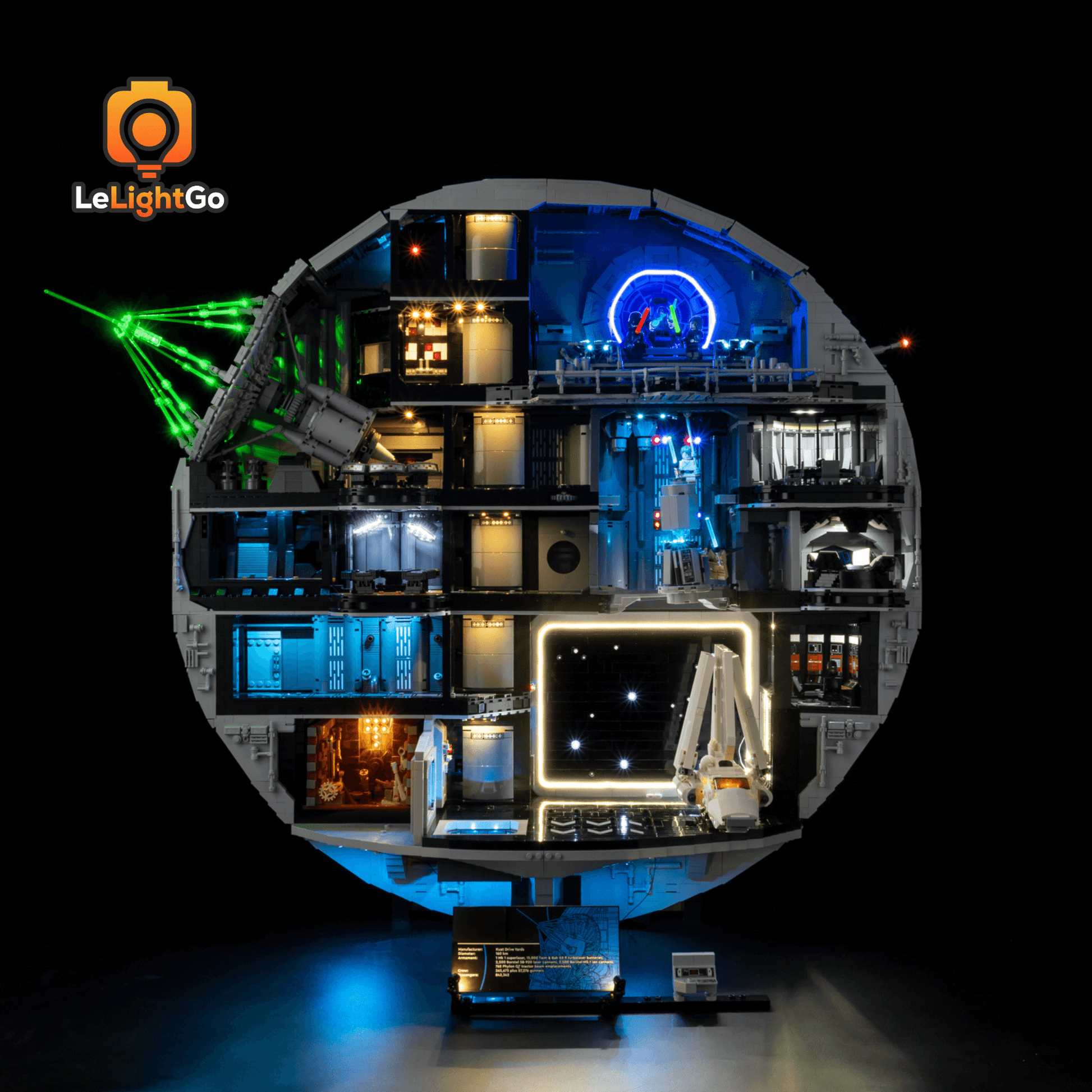 Bring magical shine to your Death Star 75419. This lighting kit is designed especially for the Lego Star Wars Death Star 75419. This highly detailed Lego model is a spectacle in itself, but when paired with the LeLightGo lighting kit, the charming model comes alive, not only during the day but also at night.
