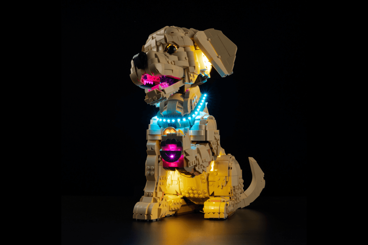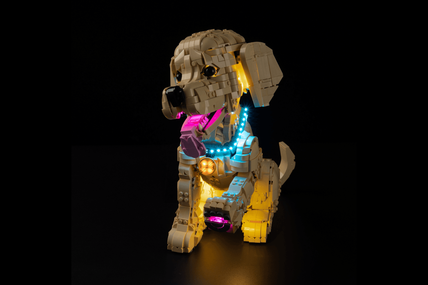 Turn your Golden Retriever Pupp LEGO® Set into a glowing masterpiece that feels alive.