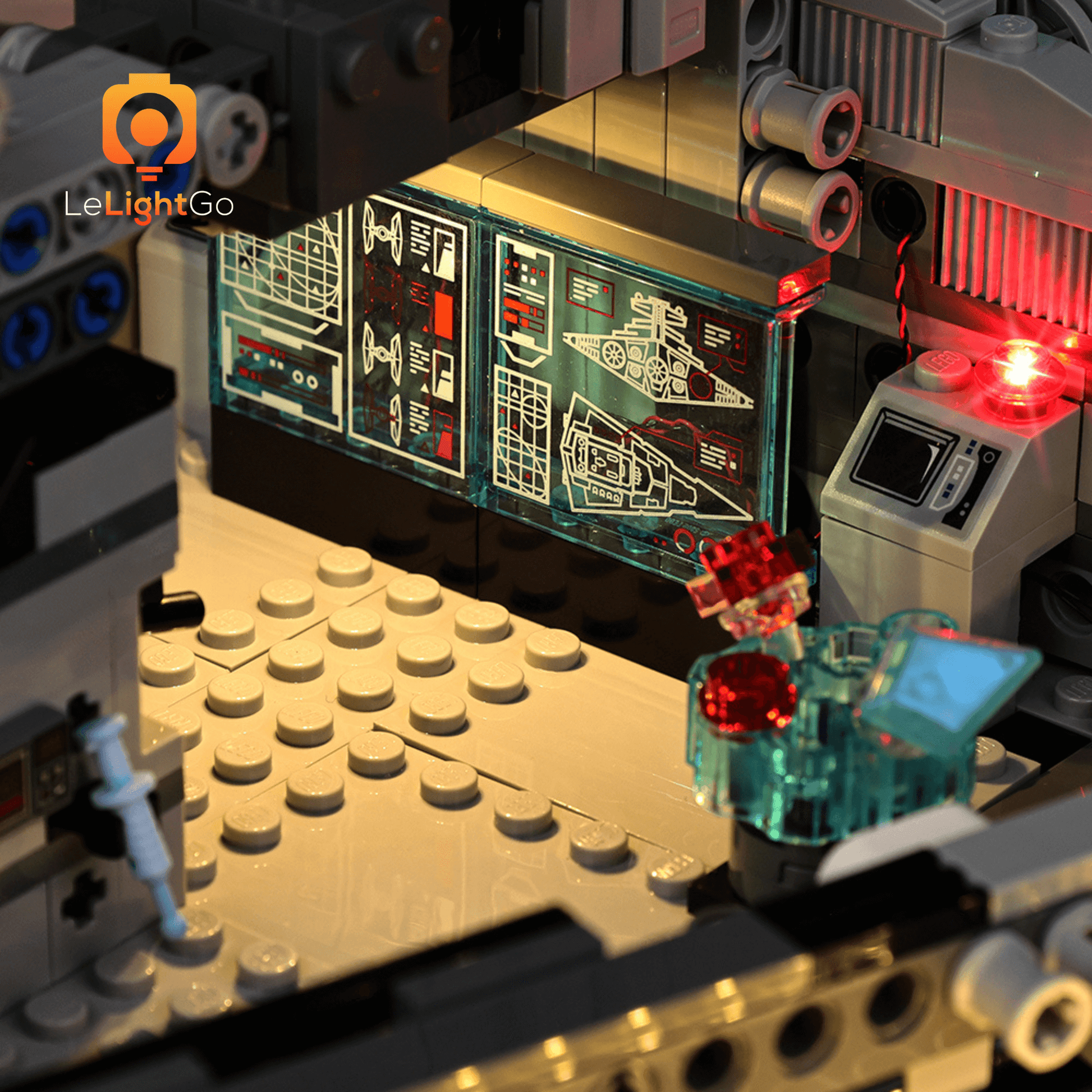 Bring magical shine to your Imperial Star Destroyer 75394. This lighting kit is designed especially for the Lego Star Wars Imperial Star Destroyer 75394. This highly detailed Lego model is a spectacle in itself, but when paired with the LeLightGo lighting kit, the charming model comes alive, not only during the day but also at night.