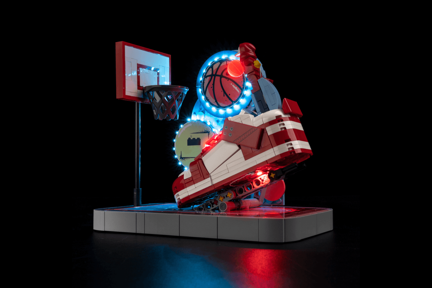 Bring magical shine to your Nike Dunk Trickshot 43021.. This lighting kit is designed especially for the Lego Nike Dunk Trickshot 43021. This highly detailed Lego model is a spectacle in itself, but when paired with the LeLightGo lighting kit, the charming model comes alive, not only during the day but also at night.