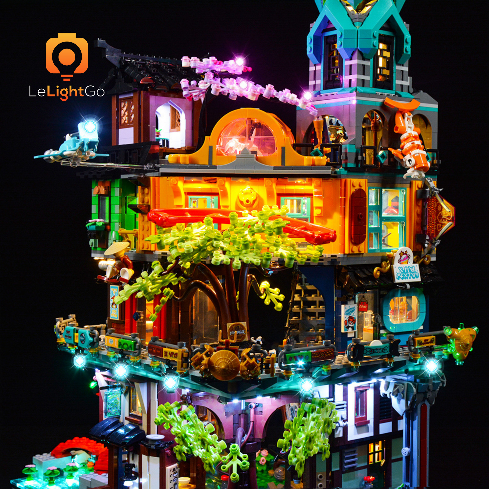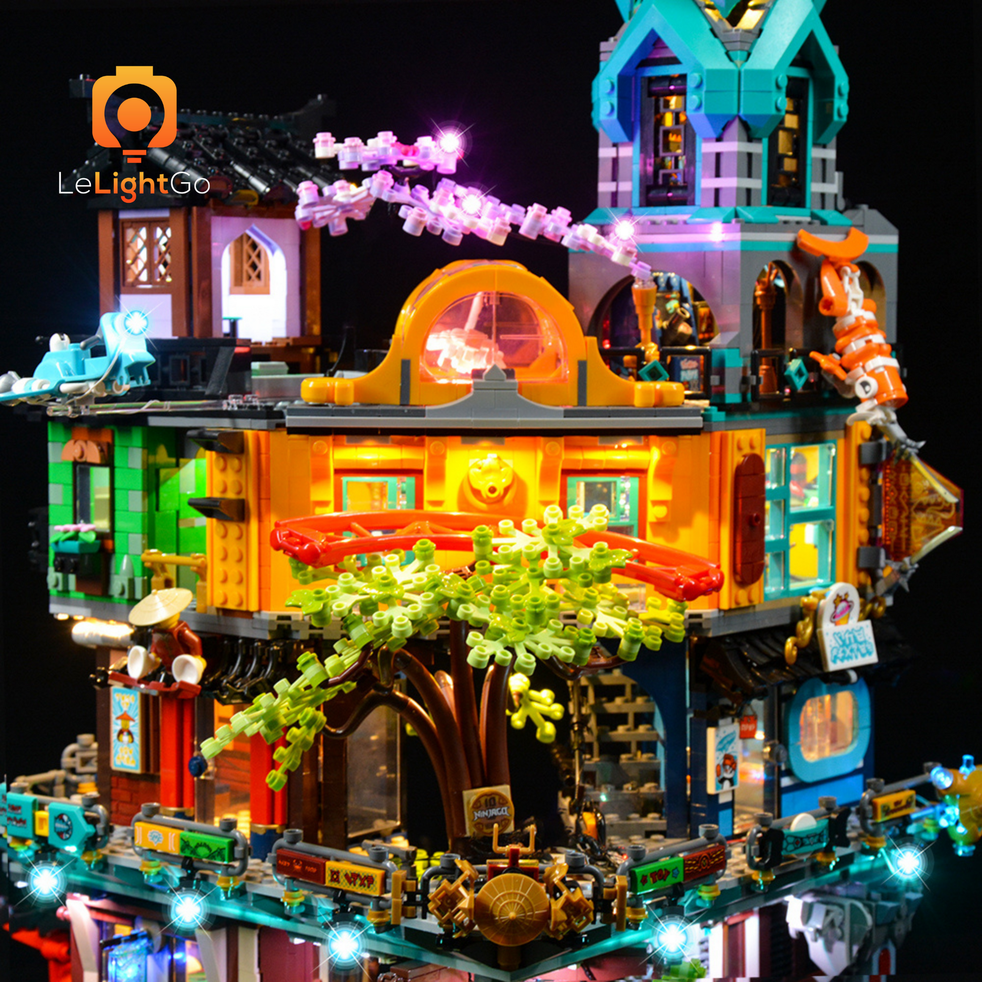 Follow LeLightGo step-by-step instructions to light up your NINJAGO City Gardens 71741, something amazing will happen at night. All our kits are plug-and-play - no electronics knowledge is needed!