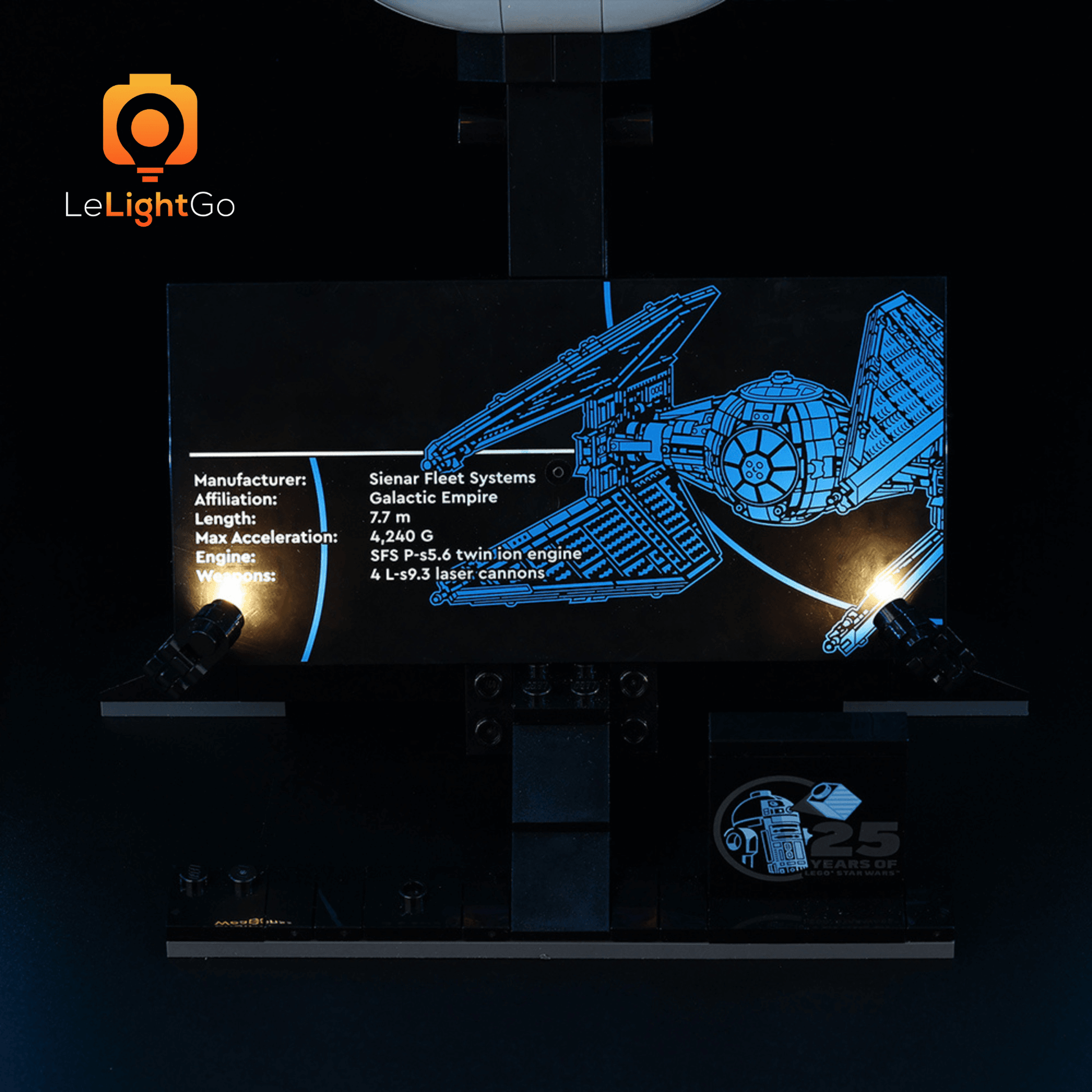 Bring magical shine to your TIE Interceptor 75382. This lighting kit is designed especially for the Lego STAR WARS TIE Interceptor 75382. This highly detailed Lego model is a spectacle in itself, but when paired with the LeLightGo lighting kit, the charming model comes alive, not only during the day but also at night.