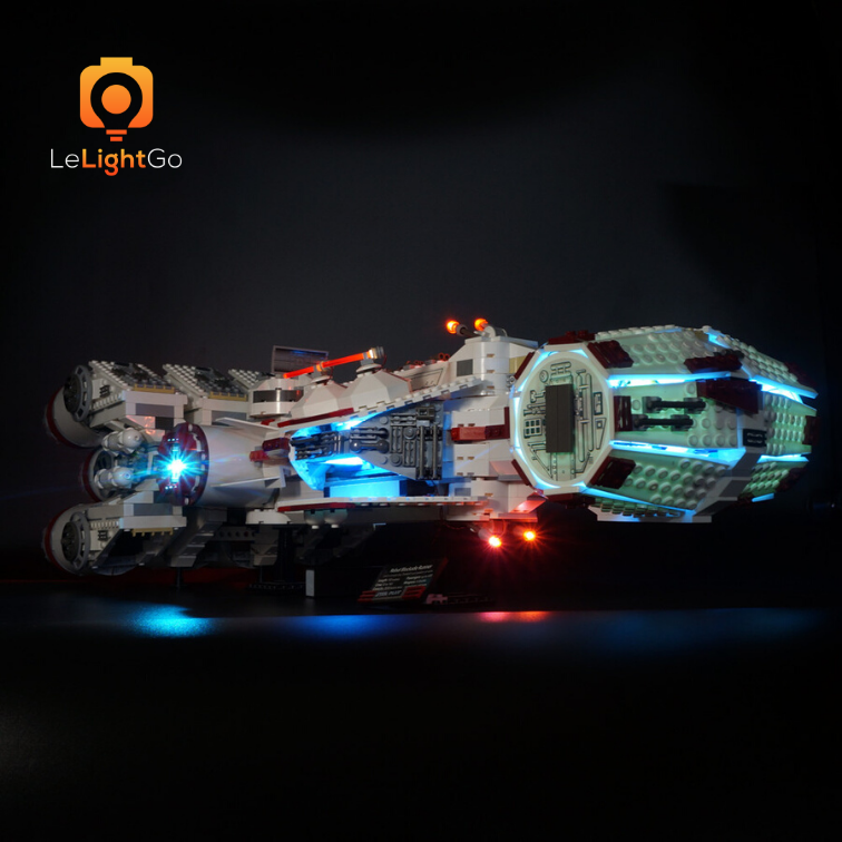Follow LeLightGo step-by-step instruction video to light up your STAR WARS REBEL BLOCKADE RUNNER something amazing will happen at night. All our kits are plug and play - no electronics knowledge needed!