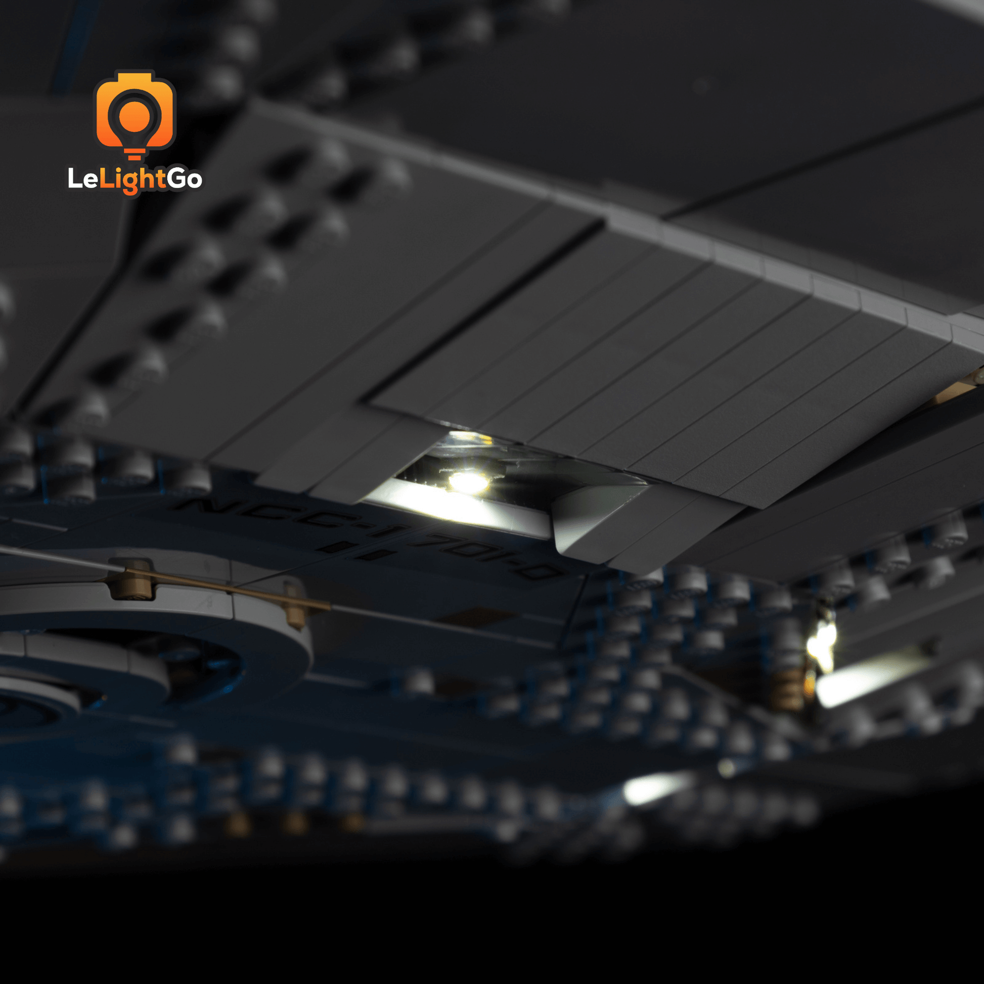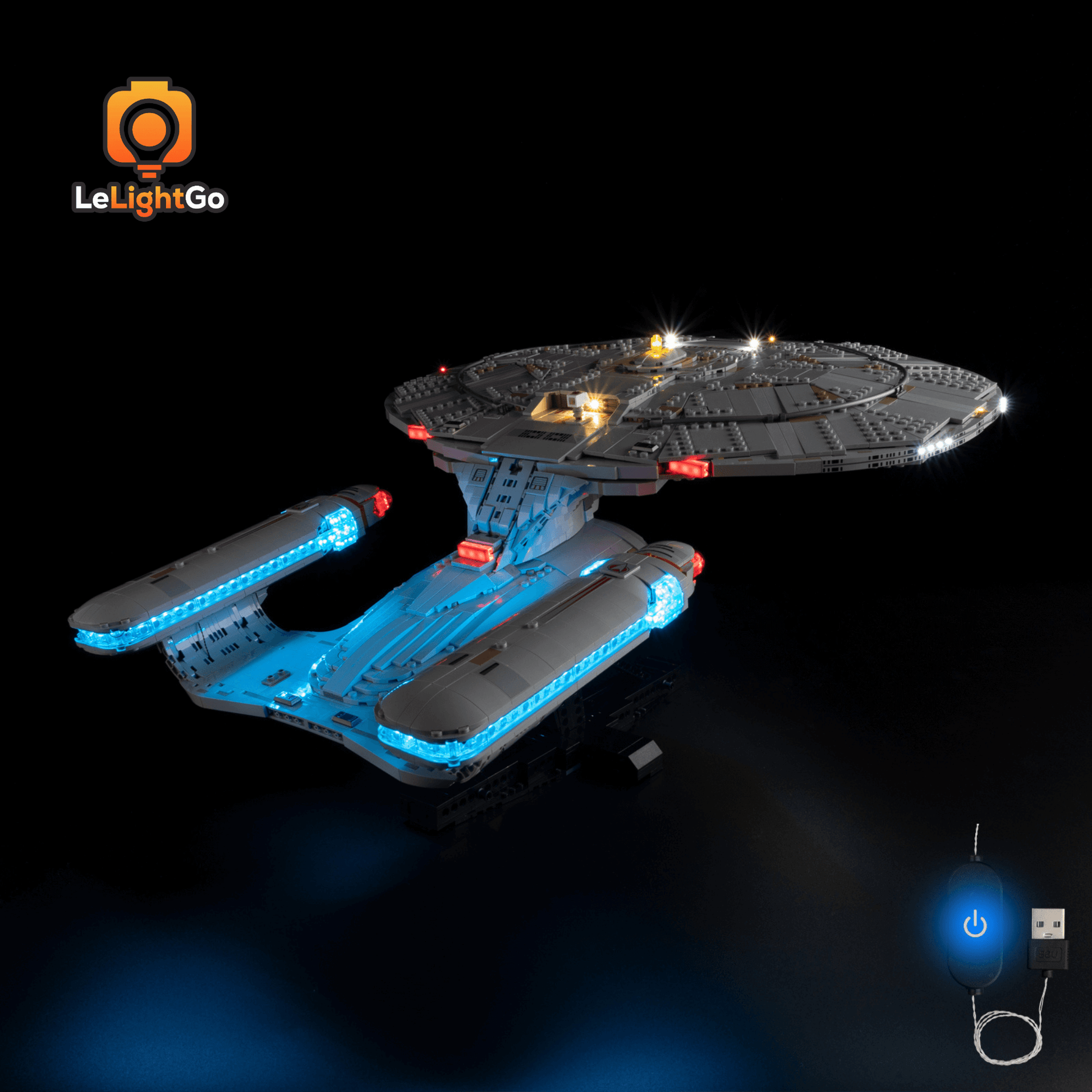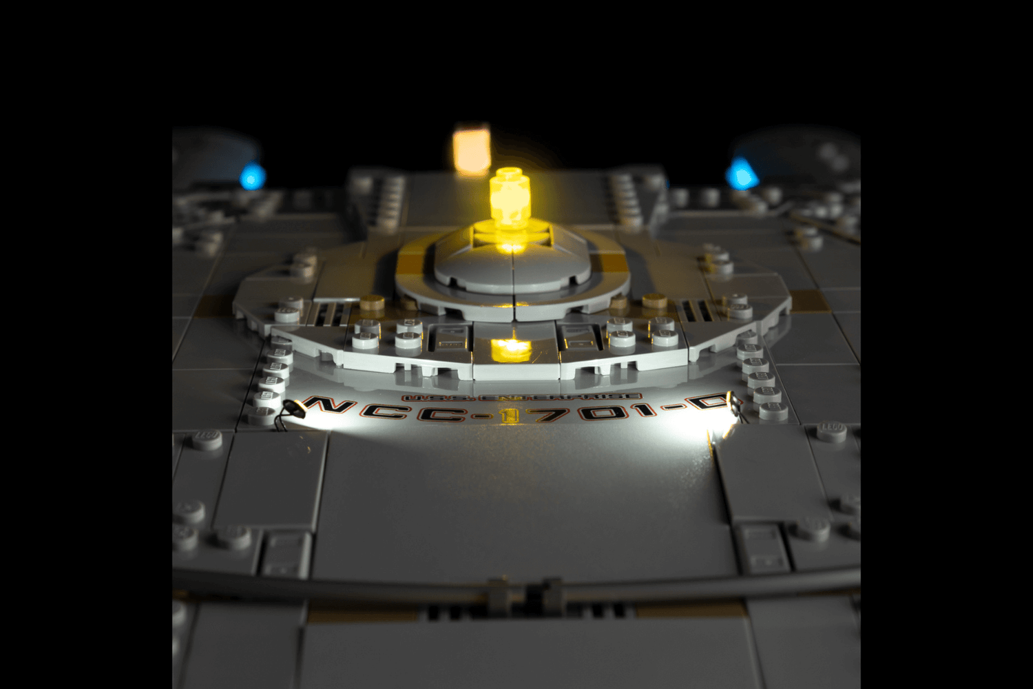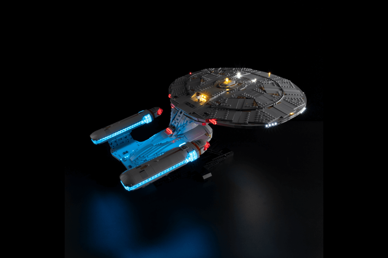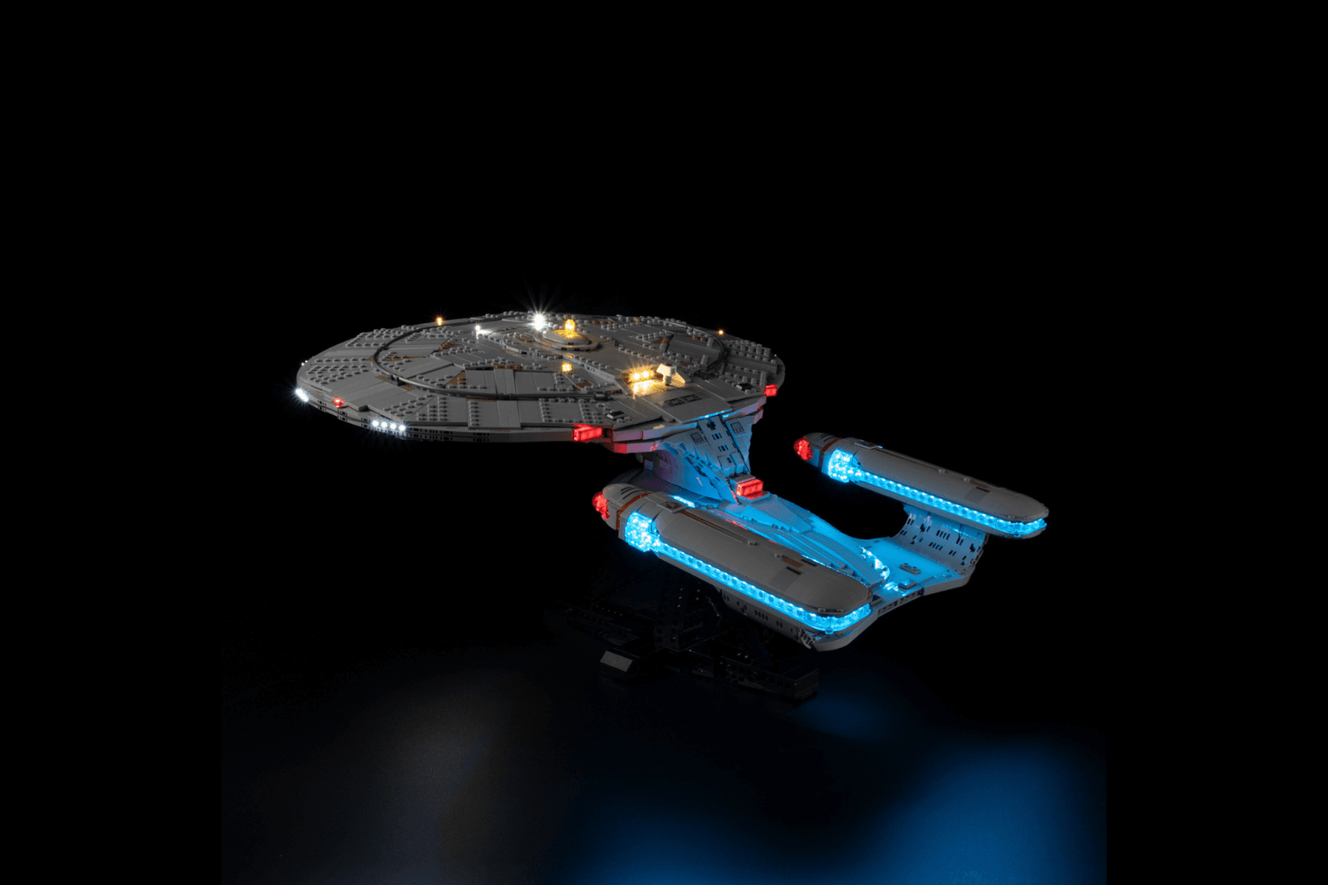 Bring magical shine to your Star Trek: U.S.S. Enterprise NCC-1701-D 10356. This lighting kit is designed especially for the Lego ICONS Star Trek: U.S.S. Enterprise NCC-1701-D 10356. This highly detailed Lego model is a spectacle in itself, but when paired with the LeLightGo lighting kit, the charming model comes alive, not only during the day but also at night.