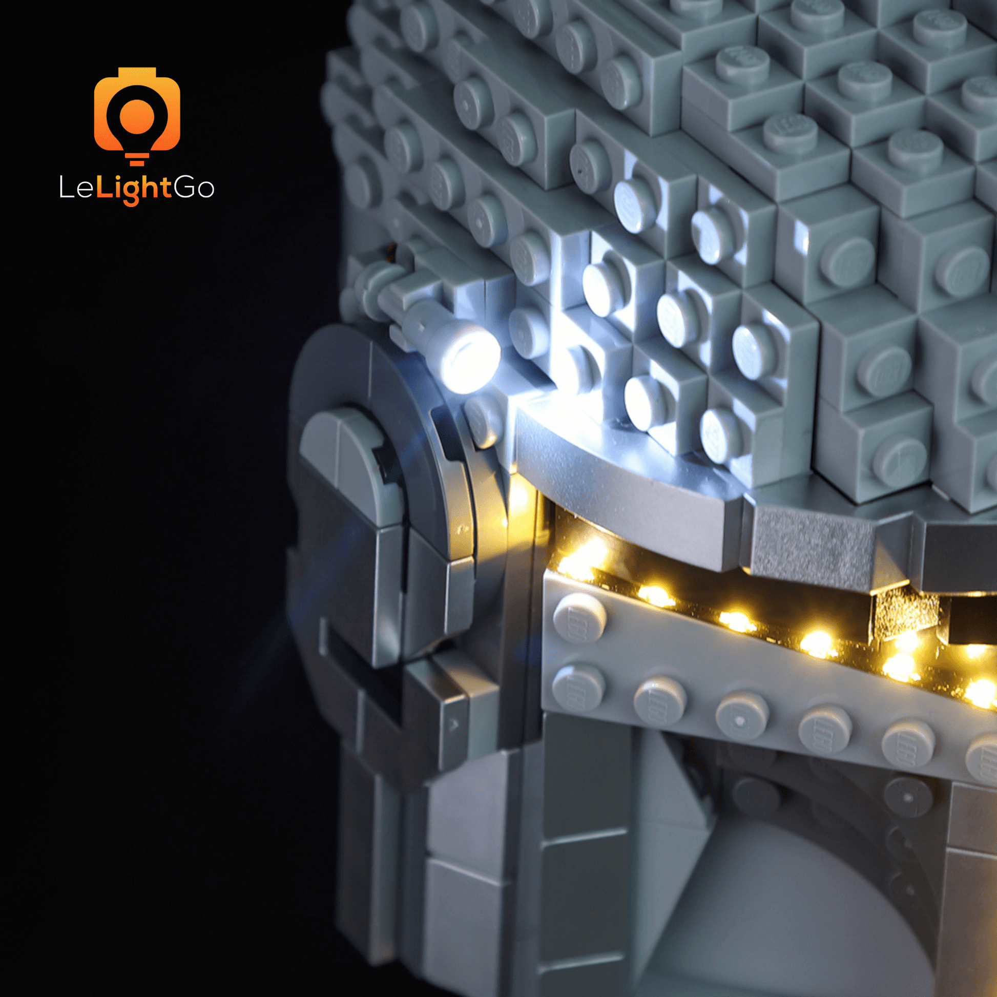 Bring magical shine to your The Mandalorian Helmet 75328. This lighting kit is designed especially for the Lego STAR WARS The Mandalorian Helmet 75328. This highly detailed Lego model is a spectacle in itself, but when paired with the LeLightGo lighting kit, the charming model comes alive, not only during the day but also at night.
