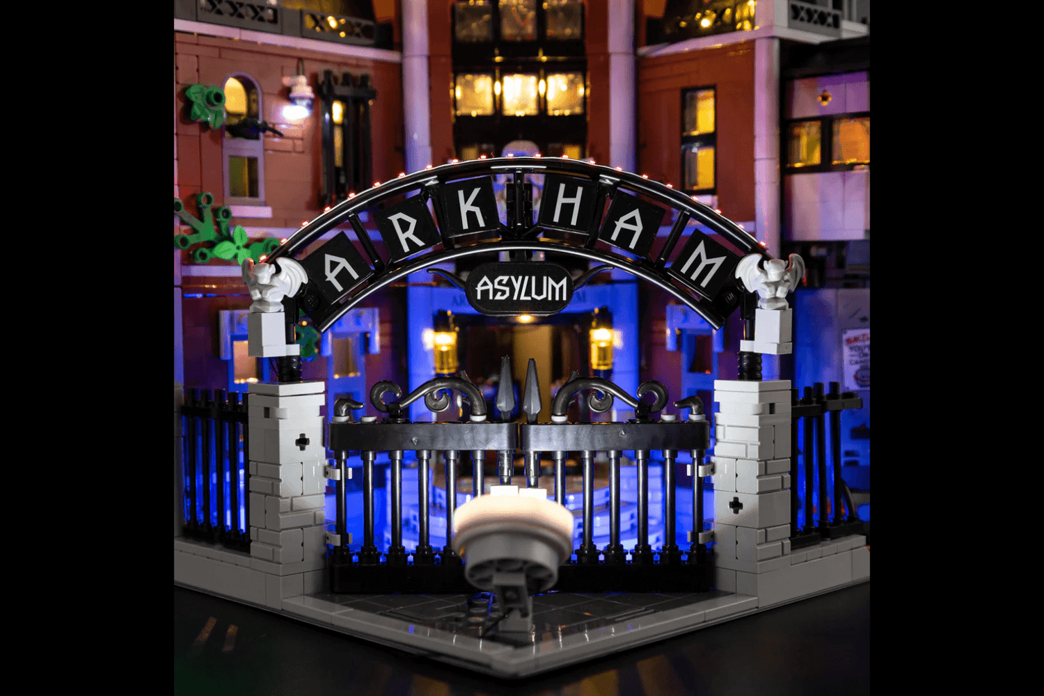 Light up Arkham’s iconic entrance for a chilling yet captivating display.
