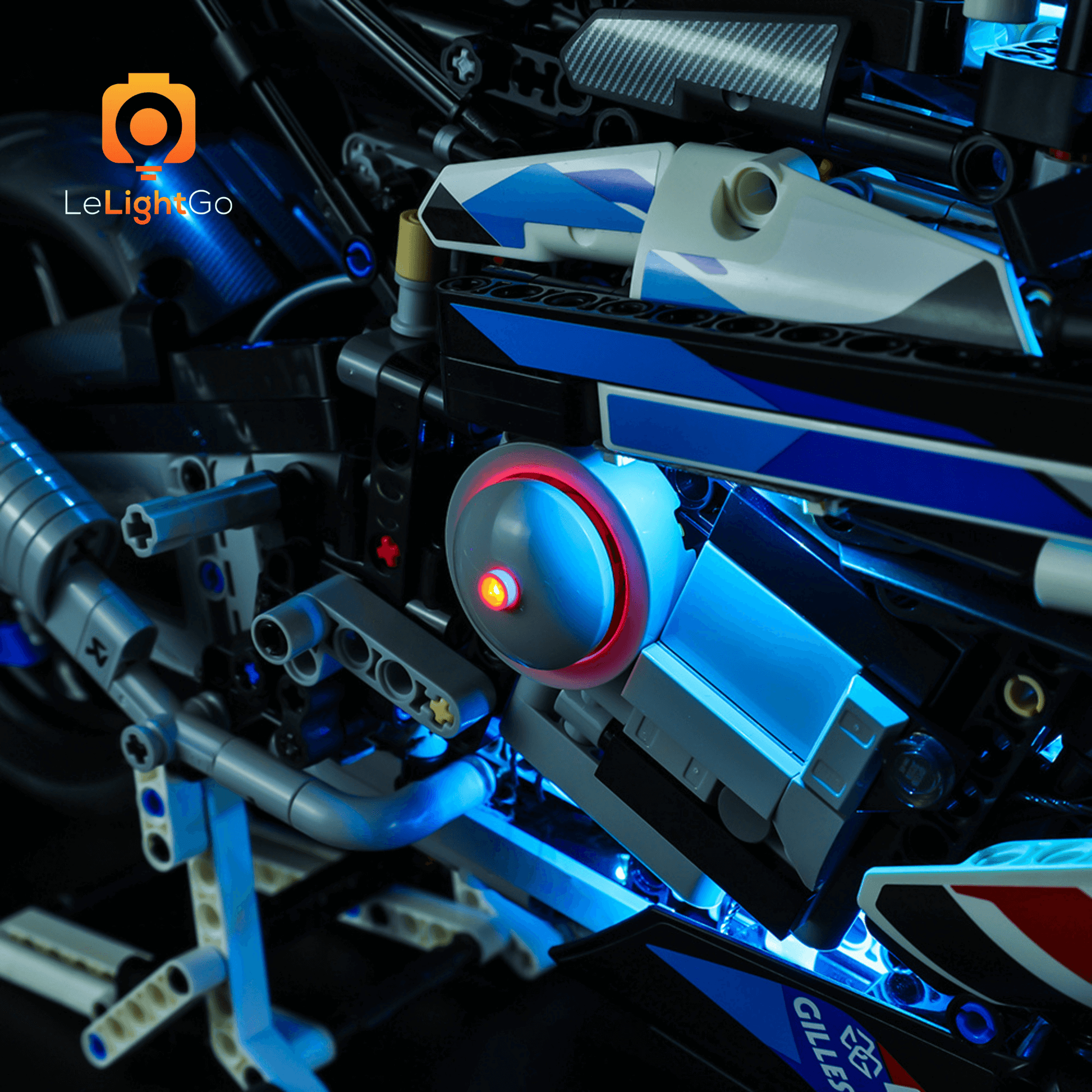Bring magical shine to your BMW M 1000 RR 42130. This lighting kit is designed especially for the Lego TECHNIC BMW M 1000 RR 42130. This highly detailed Lego model is a spectacle in itself, but when paired with the LeLightGo lighting kit, the charming model comes alive, not only during the day but also at night.