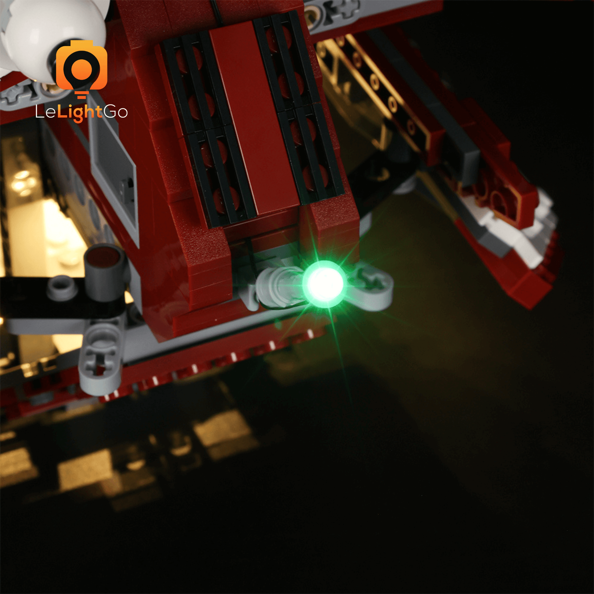 Bring magical shine to your Coruscant Guard Gunship 75354. This lighting kit is designed especially for the Lego STARWARS Coruscant Guard Gunship 75354. This highly detailed Lego model is a spectacle in itself, but when paired with the LeLightGo lighting kit, the charming model comes alive, not only during the day but also at night.