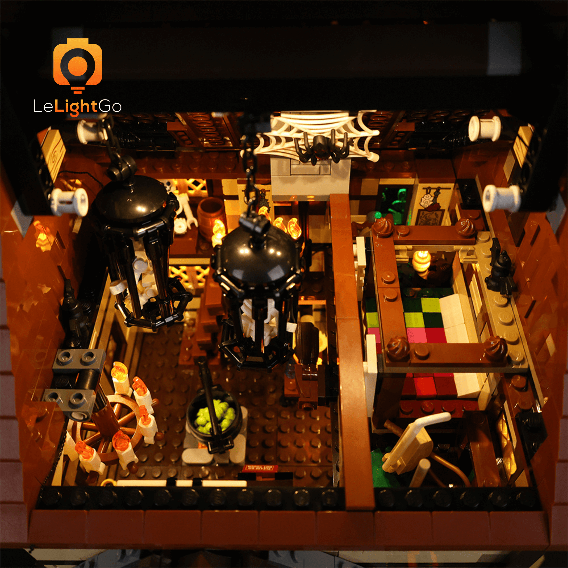 Bring magical shine to your Disney Hocus Pocus: The Sanderson Sisters' Cottage 21341. This lighting kit is designed especially for the Lego Ideas Disney Hocus Pocus: The Sanderson Sisters' Cottage 21341. This highly detailed Lego model is a spectacle in itself, but when paired with the LeLightGo lighting kit, the charming model comes alive, not only during the day but also at night.