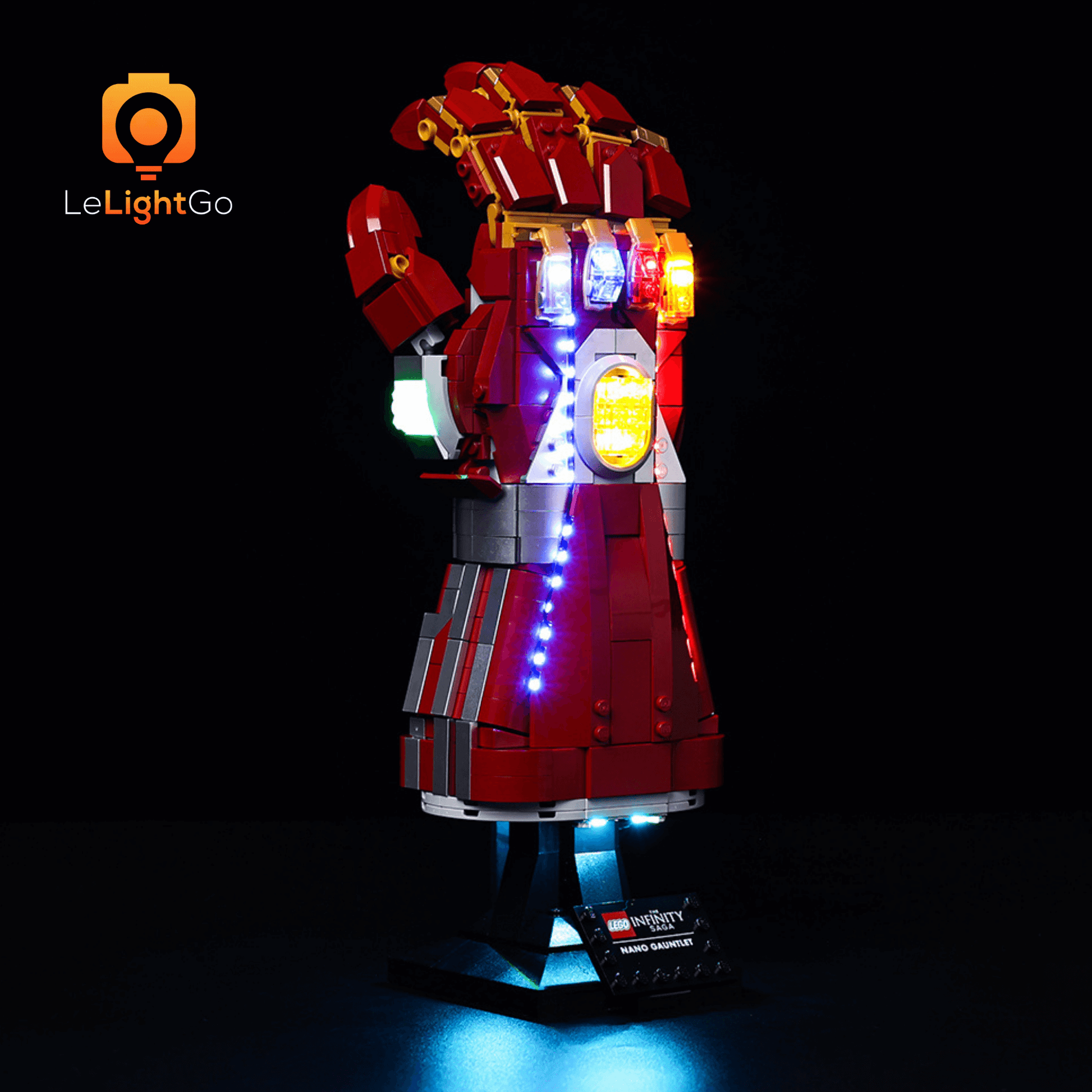 Bring magical shine to your Nano Gauntlet 76223. This lighting kit is designed especially for the Lego Marvel Nano Gauntlet 76223. This highly detailed Lego model is a spectacle in itself, but when paired with the LeLightGo lighting kit, the charming model comes alive, not only during the day but also at night.