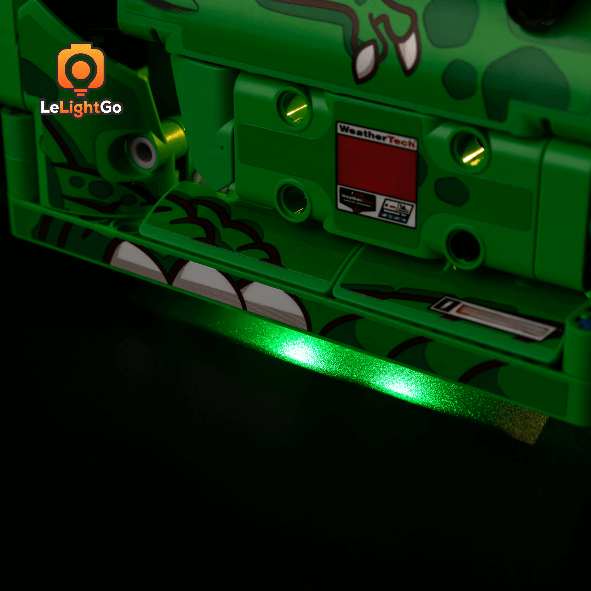 Green glow lights bring Rexy alive, making your car look fierce