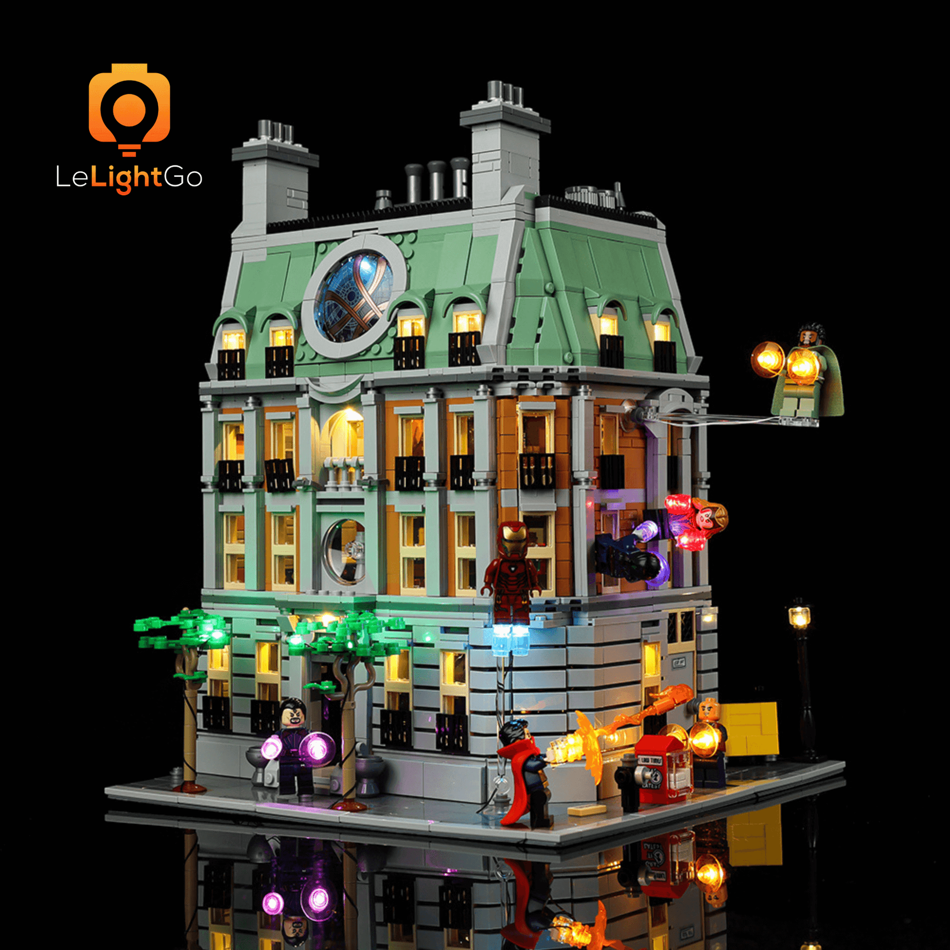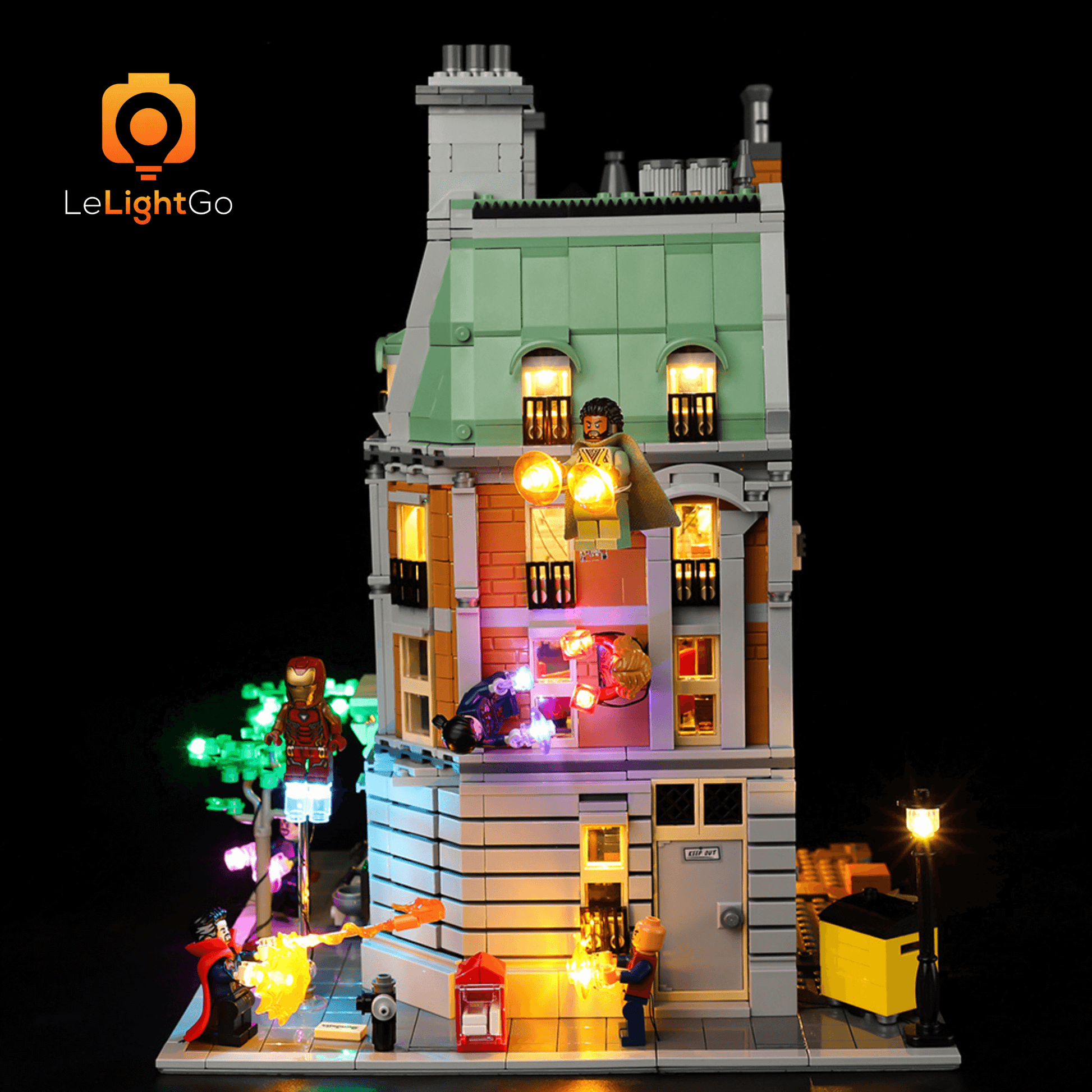 Bring magical shine to your Sanctum Sanctorum 76218. This lighting kit is designed especially for the Lego Marvel Sanctum Sanctorum 76218. This highly detailed Lego model is a spectacle in itself, but when paired with the LeLightGo lighting kit, the charming model comes alive, not only during the day but also at night.