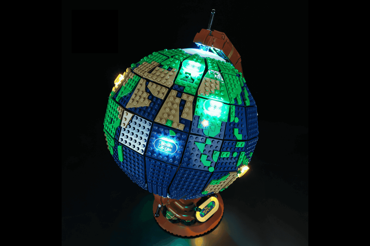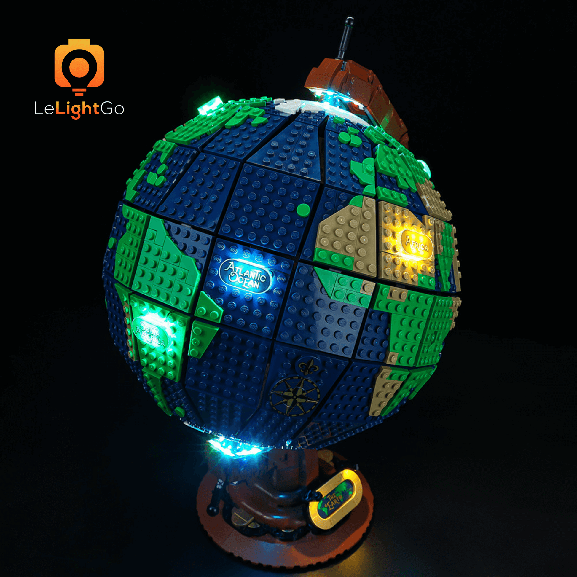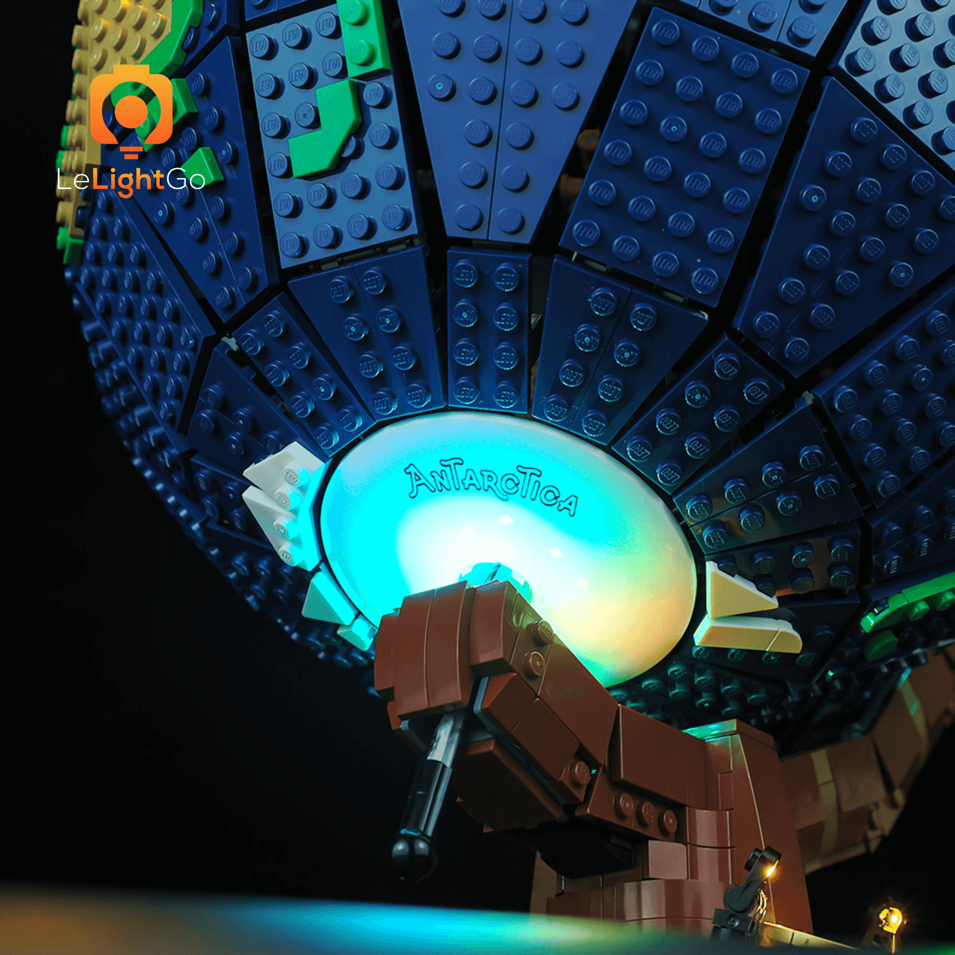 Bring magical shine to your The Globe 21332. This lighting kit is designed especially for the Lego Ideas The Globe 21332. This highly detailed Lego model is a spectacle in itself, but when paired with the LeLightGo lighting kit, the charming model comes alive, not only during the day but also at night.
