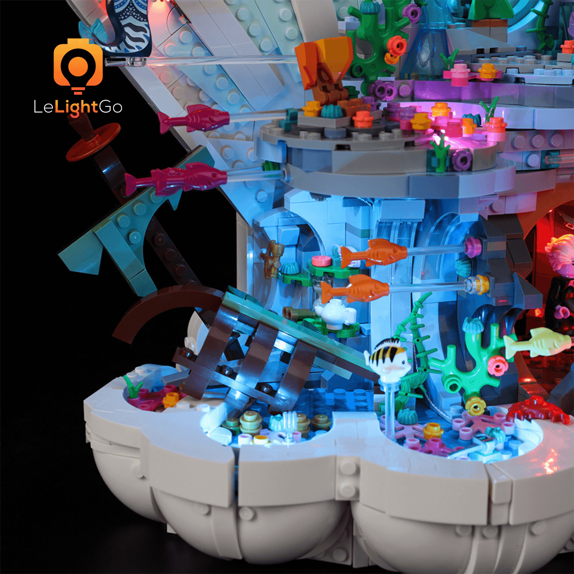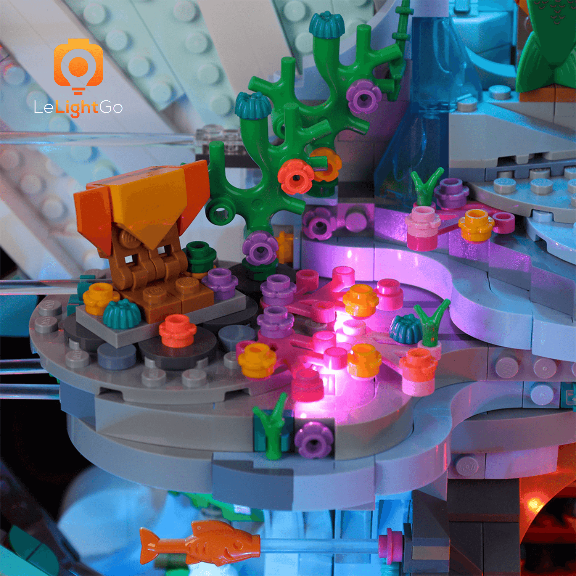 Bring magical shine to your The Little Mermaid Royal Clamshell 43225. This lighting kit is designed especially for the Lego Disney The Little Mermaid Royal Clamshell 43225. This highly detailed Lego model is a spectacle in itself, but when paired with the LeLightGo lighting kit, the charming model comes alive, not only during the day but also at night.